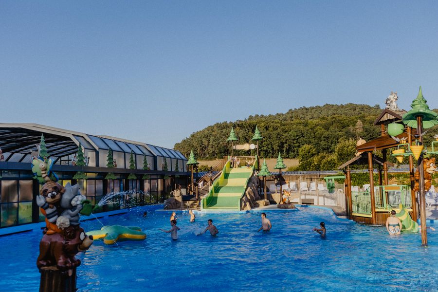 Several indoor and outdoor pools, large slide, adventure playground. Each pitch has its own water tap and electricity connection. In the early and late season, guests can leave their caravan free of charge. Varied entertainment programme during the main holidays.