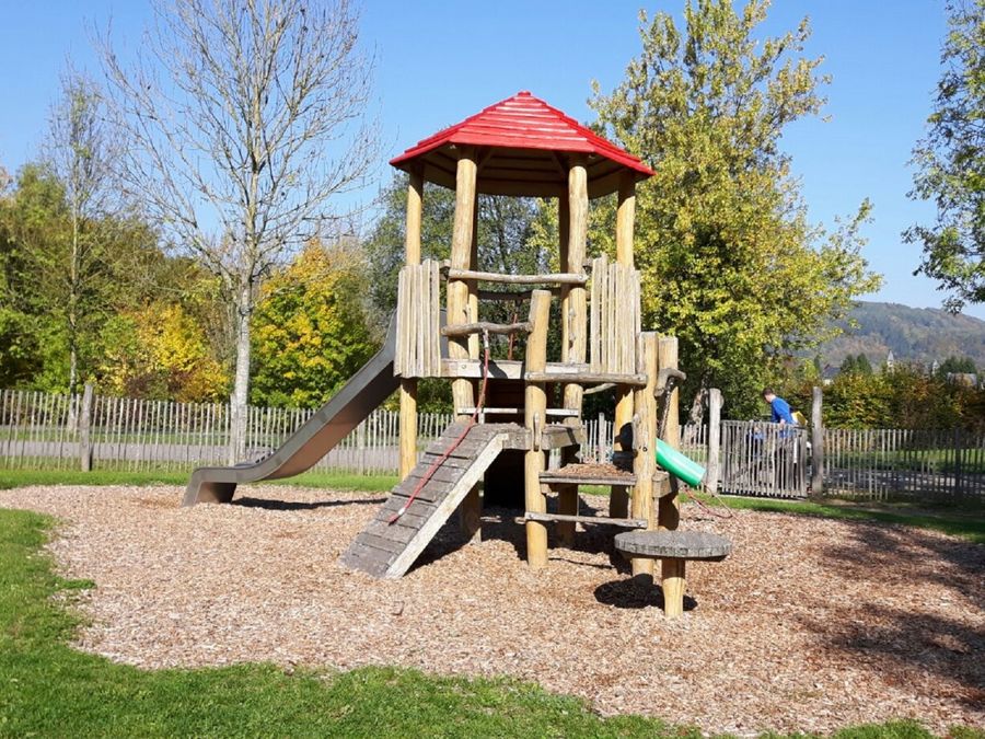 Am linken Ufer des Sees, gegenüber der Römervilla, liegt ein schöner Abenteuerspielplatz mit den passenden Spielelementen für kleine und größere Kinder. Ein Holzlattenzaun sorgt dafür, dass der groß angelegte Feinsandplatz sauber bleibt. WC vorhanden.