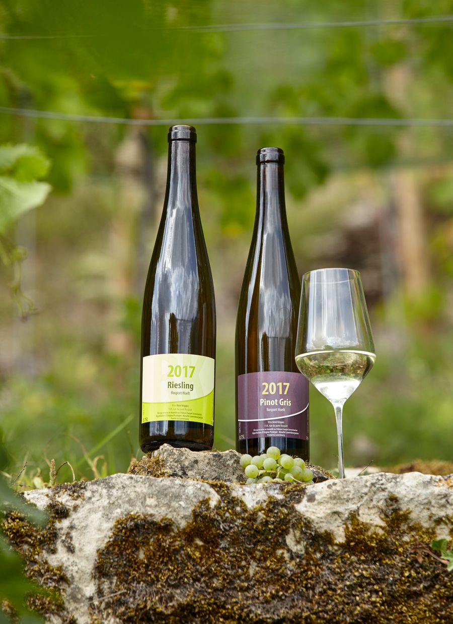In 2007 hat der Eigentümer in Rosport 30 Ar Land in den Hängen der Hoelt erstanden um dort einen Weinberg anzulgen. 2009 wurde Riesling angepflanzt und 2010 Grauburgunder. Seit 2016 gibt es auch eine Auxerroisanlage. Insgesamt beträgt die von mir bewirtschaftete Fläche rund 31 Ar. Die Hangneigung beträgt zwischen 10% und 40% (in Schnitt 30%). Der Riesling befindet teilweise auf Terassen, wo die Bewirtschaftung nur manuell per Hand erfolgen kann.