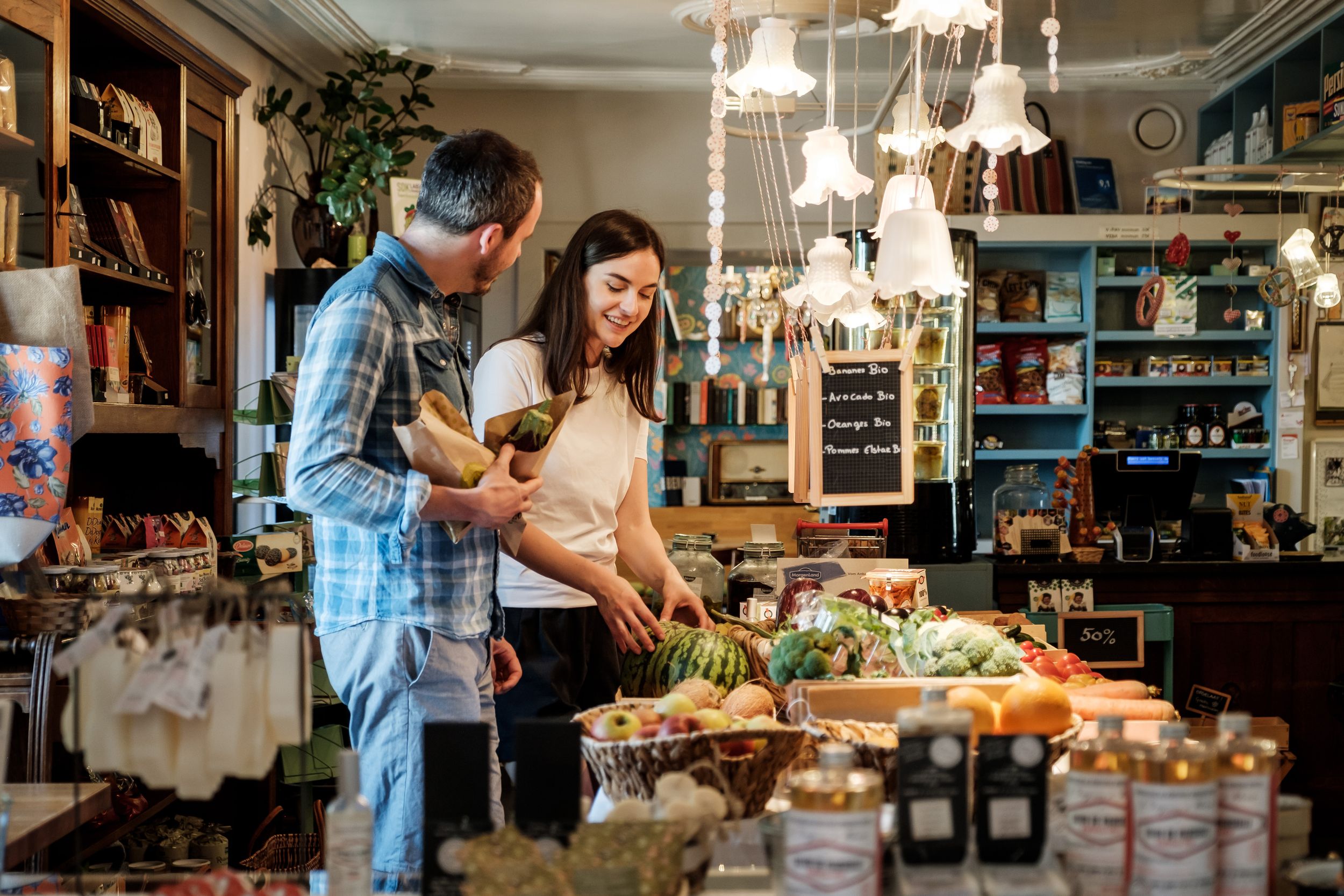 Kleines charmantes Restaurant und Lebensmittelladen mit regionalen Produkten.