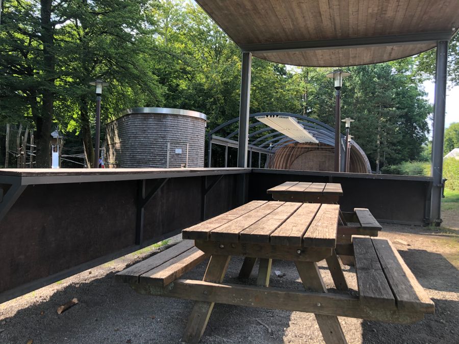 Sanitäranlagen befinden sich in der Nähe, die Grillstelle ist teilweise überdacht.