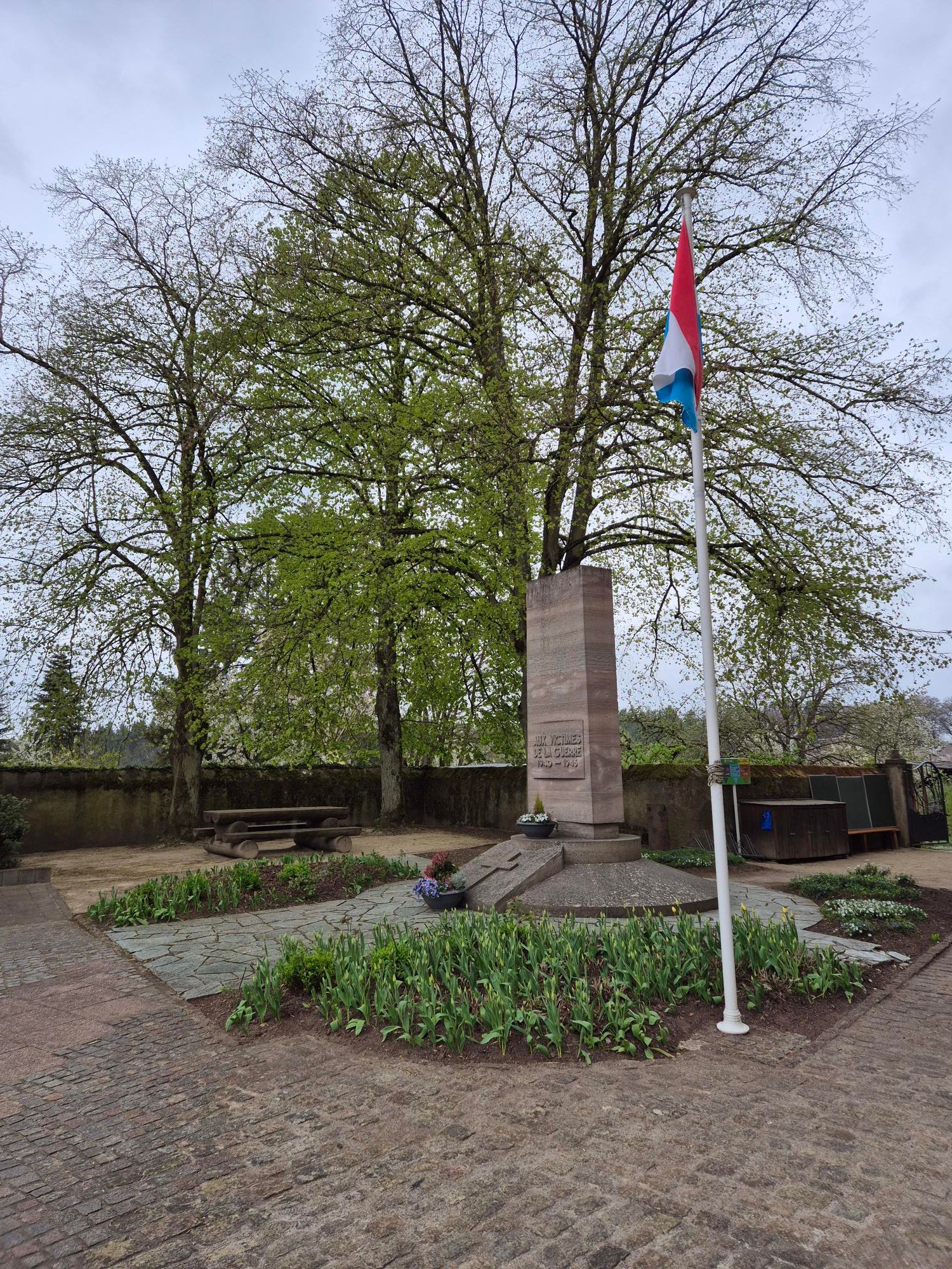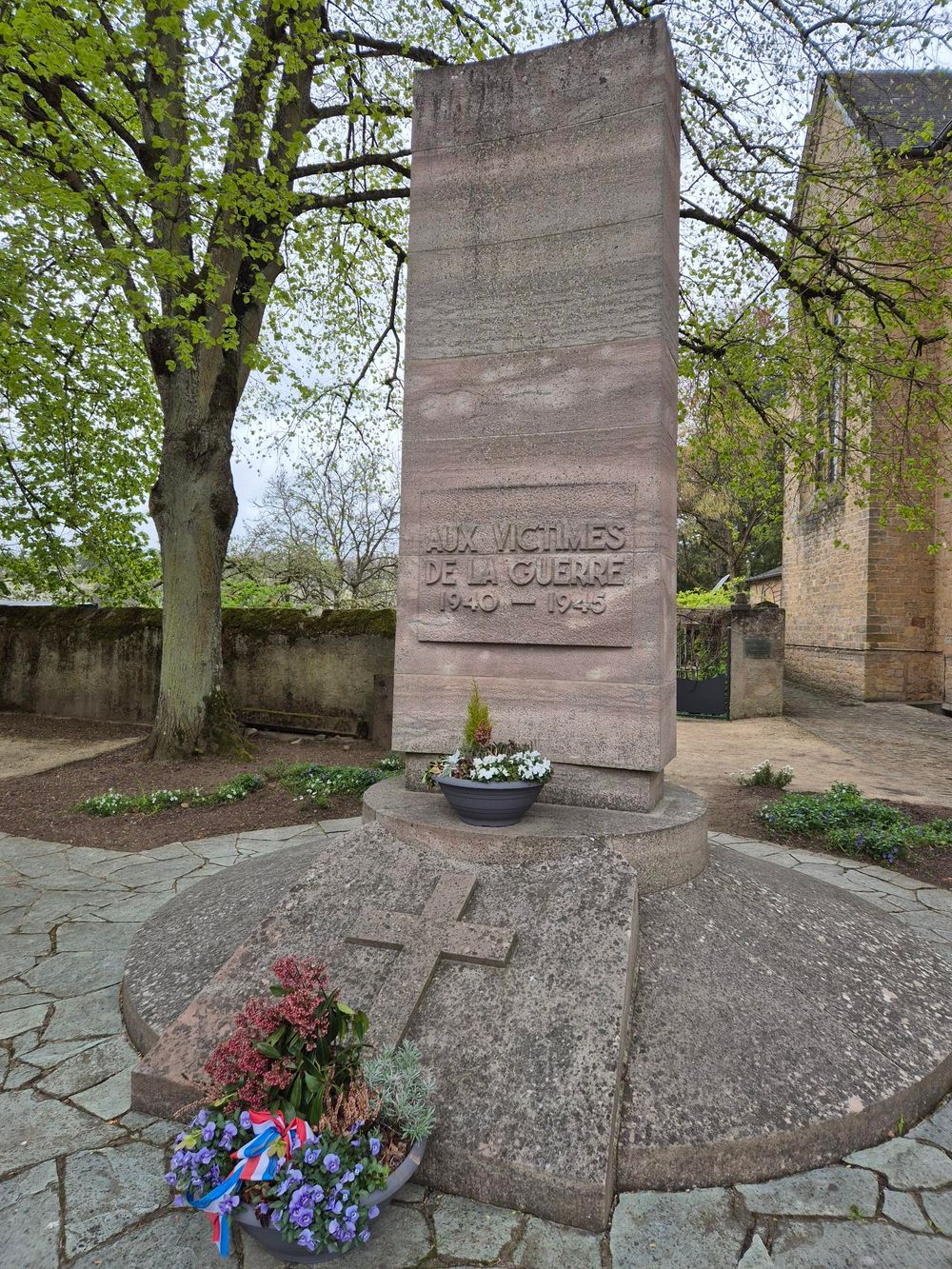 Der Gedenkstein mit der Inschrift „Aux victimes de la guerre 1940-1945“ – „An die Opfer des Krieges von 1940 bis 1945“ soll an die im Zweiten Weltkrieg vermissten und getöteten Bewohner*innen Beauforts erinnern.