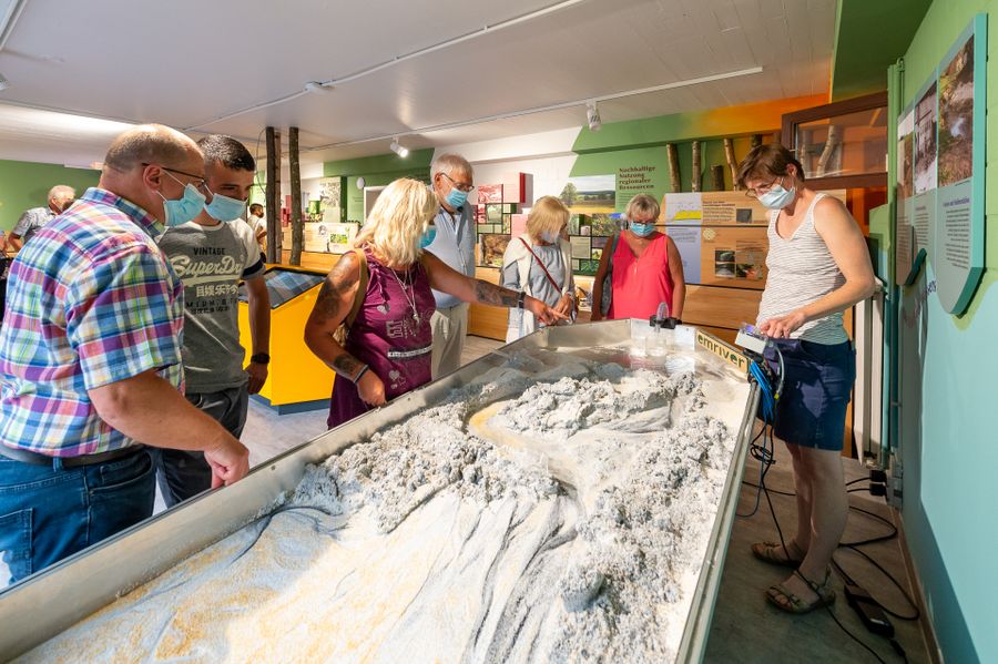 Die Ausstellung des Mëllerdall UNESCO Global Geoparks zeigt die Entstehung des besonderen geologischen, natürlichen und kulturellen Erbes der Region. Sie erzählt von der Entstehung des geologischen Untergrundes als Meeresboden und von der Formung der Landschaft, nachdem der Meeresboden festes Land geworden war. Sie greift die menschliche Nutzung natürlicher Ressourcen von der Steinzeit bis in die Neuzeit auf und erklärt dabei die Entstehung der Kulturlandschaft mit ihrer Vielzahl ökologischer Nischen.