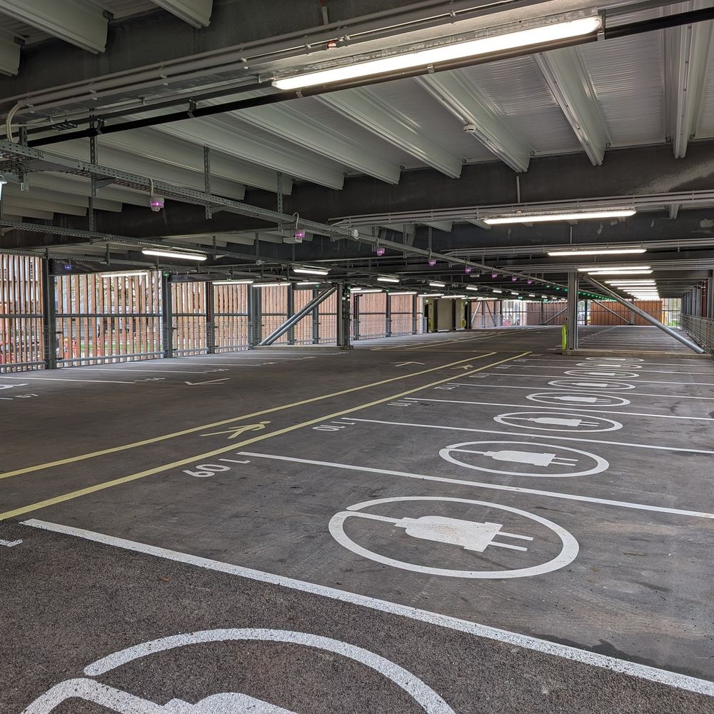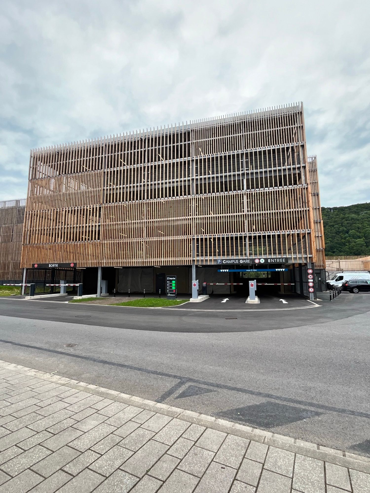 Das moderne Parkhaus am Campus Gare verfügt über insgesamt 235 Parkplätze, darunter 10 reservierte Stellplätze für Elektrofahrzeuge und weitere 8 für Personen mit eingeschränkter Mobilität.