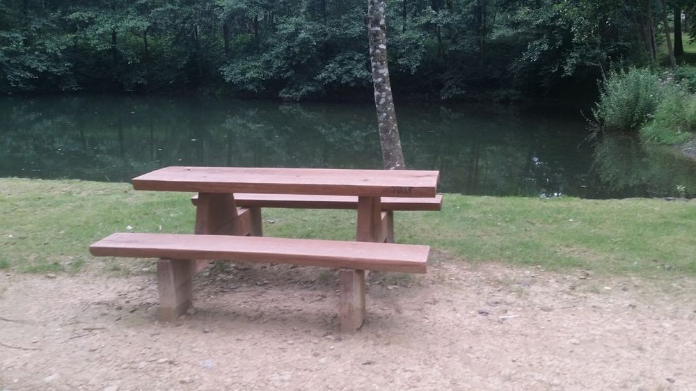 Naturnaher Grillplatz mit Grillhütte und Sitzmöglichkeiten.