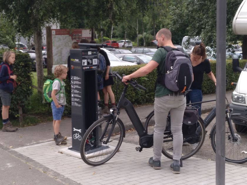 Reparieren und Laden Sie ihr Fahrrad direkt am Echternacher See.Mehr erfahren©Toursit Info Berdorf Wo? 5, Beim Martbusch, L-6552 BerdorfFahrrad-Reparaturstation Berdorf