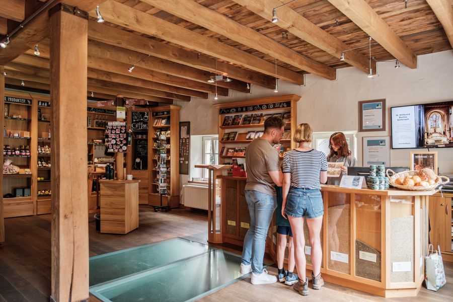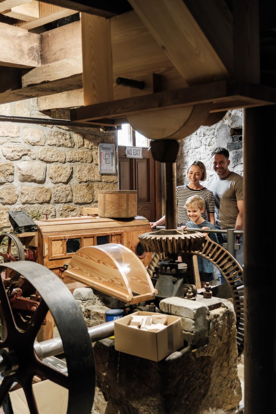 Die wunderschön restaurierte barrierefreie Getreidemühle aus dem 17. Jahrhundert verfügt über ein Mühlenmuseum und einen mit Holz befeuerten Steinbackofen, wo das Mühlenbrot an Backtagen noch selbst gebacken wird. Im Touristcenter gibt es eine Vielfalt an regionalen Produkten zu kaufen. Den Kärespäicher, ein großer Saal, kann man für Veranstaltungen mieten. Es werden Backkurse und Wanderungen zur Kalktuffquelle angeboten sowie Picknickkörbe mit regionalen Produkten zusammengestellt.