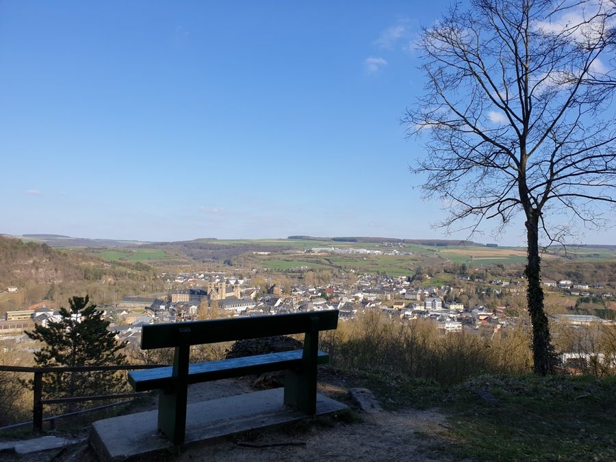 Die zweite Hälfte des Weges führt nun bergab, zunächst entlang des renaturierten Aesbaach bis hinunter zur Sauer und folgt dort dem Fluss bis in den Echternacher Stadtpark und zurück zum Ausgangspunkt.