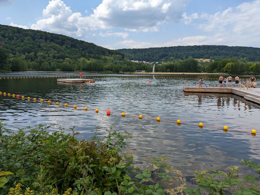 An warmen Tagen lädt die Badestelle am See zur Abkühlung ein. Dort besteht auch die Möglichkeit, sich ein Tretboot oder ein Stand Up Paddle auszuleihen.