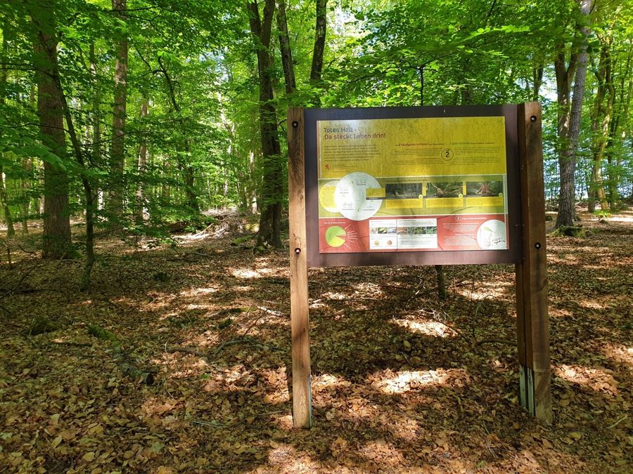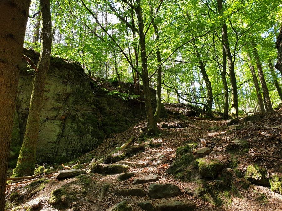 Diese leichte Wanderung verläuft hauptsächlich auf breiten Waldwegen und beginnt auf der Route de Reisdorf. Der Wanderweg führt in den Wald, hinunter zum Birkbaach und dann hinauf auf das Plateau nördlich von Beaufort, abwechselnd zwischen Laub- und Nadelbäumen.