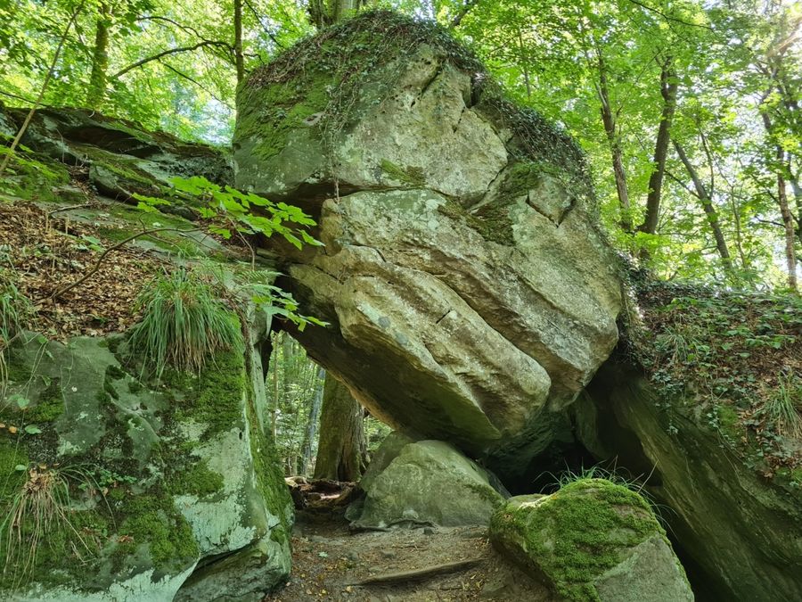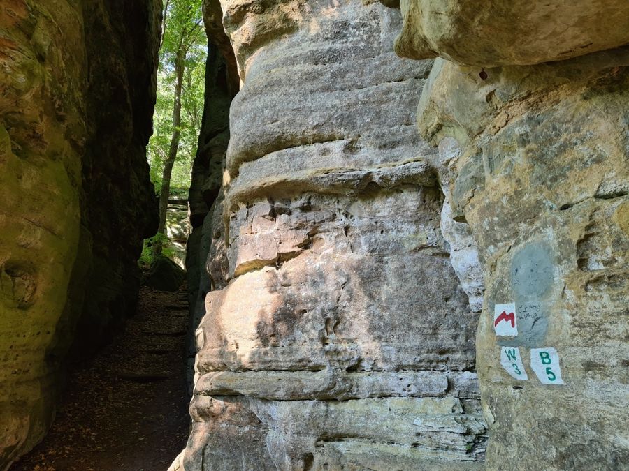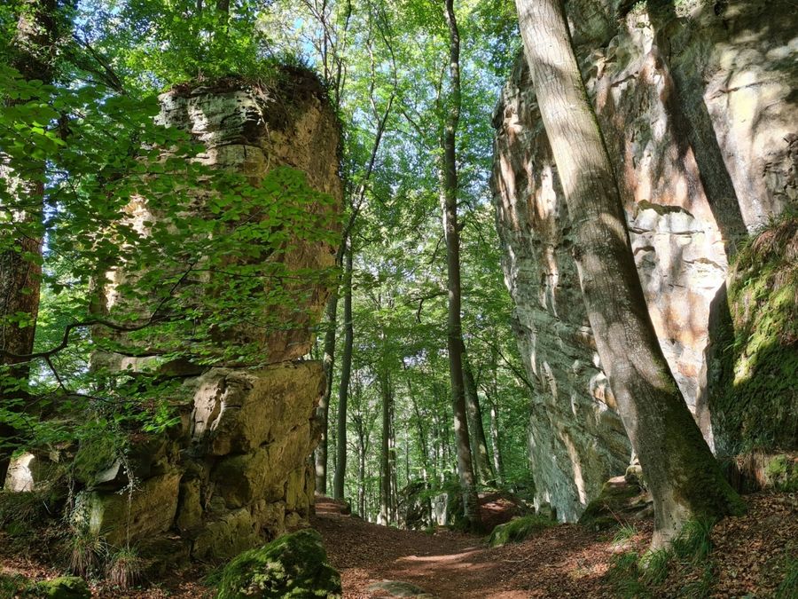 Los geht’s in der Ortschaft Müllerthal am Touristcenter Heringer Millen. Durch den Wald führt die Wanderung in Richtung Berdorf über malerische Hänge und an märchenhaften Felsen vorbei. Die schmalen Gänge in den haushohen Felswänden rund um die Werschrummschlëff laden zum Entdecken ein. Direkt danach gelangen Sie an den Predigtstuhl, eine haushohe Felsformation die halb über die Hauptstraße nach Berdorf hängt. Auf in den Fels gehauenen Stufen durch seine labyrinthartigen Gänge können Sie den Predigtstuhl erklimmen und die Aussicht genießen. Der Rückweg führt durch das kühle Tal der schwarzen Ernz zurück ins Dörfchen Müllerthal.