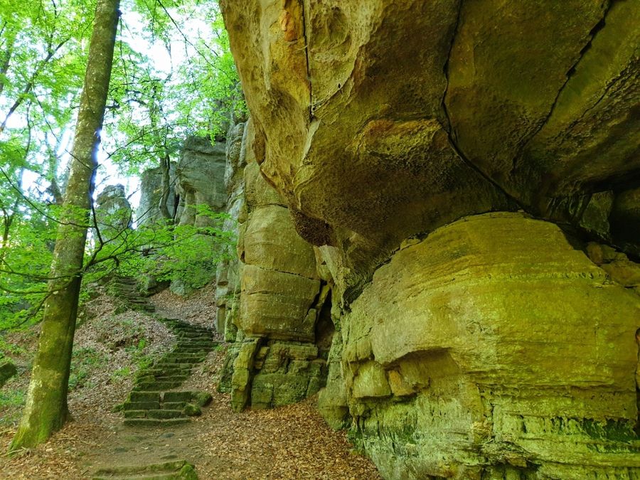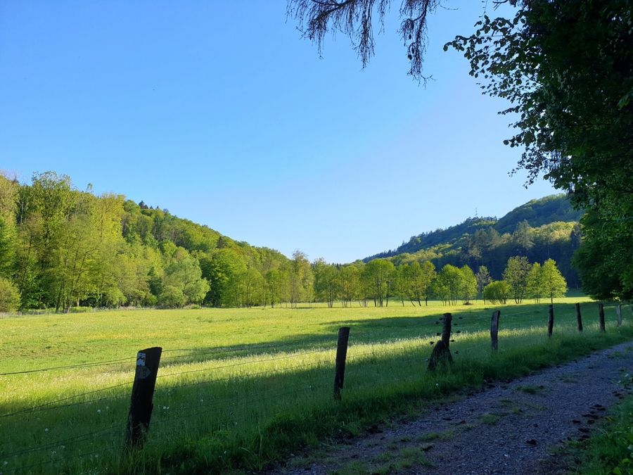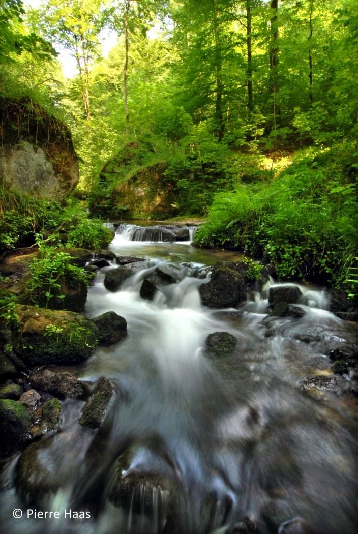Vom Parkplatz am Rand von Haller aus führt dieser 10 km lange Wanderweg erst auf einem langen Abstieg durch Wiesen und Wälder ins Tal der Schwarzen Ernz. Mit ein bisschen Glück sieht man am Weg die berühmten Black Angus Rinder, die weit über die Grenzen der Region von Fleischliebhabern geschätzt werden. Durch das wunderschöne Tal des Halerbaach mit seinen eindrucksvollen Felsen entlang des Bachlaufs gelangt man schließlich zurück zum Ausgangspunkt.