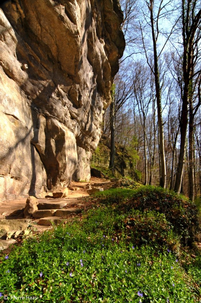Der Wanderweg führt von dort aus auf die Hochebene zwischen Christnach und Waldbillig, wo sich ein weiter Blick über Felder und Wiesen auftut. Das letzte Stück zurück zum Ausgangspunkt führt wieder durch den Wald, entlang der imposanten Sandsteinfelsen, die typisch für die Region Müllerthal - Kleine Luxemburger Schweiz sind.