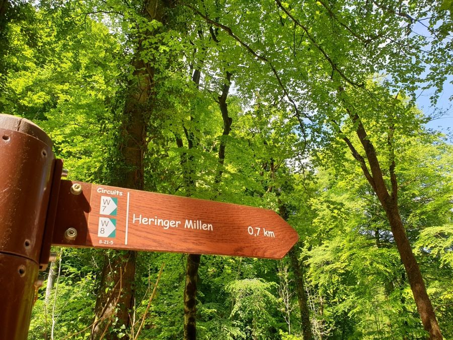 Die zweite Hälfte der Wanderung bietet ein Highlight nach dem anderen. Nach einem Abstieg durch den Wald gelangen Sie an die Schwarze Ernz und kommen am Fundort des Skeletts des Loschbourmanns vorbei, der hier vor rund 8000 Jahren gelebt hat.