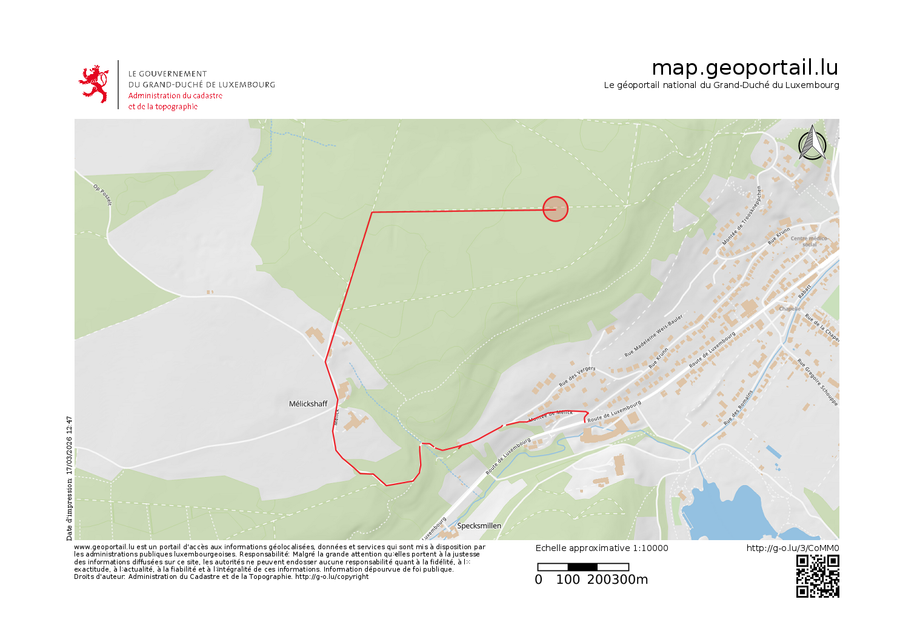 Treffpunkt ass am Gemengebësch „Ierelchen“. Beim Melickshaff riets. (Kuckt d‘Kaart).