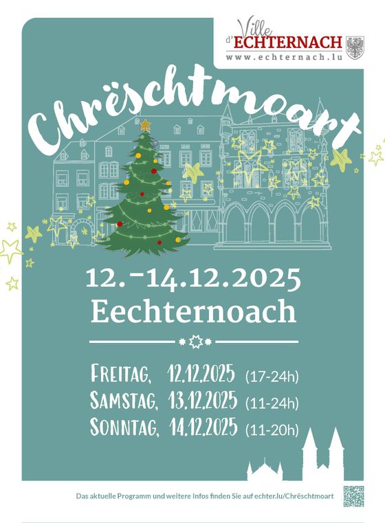 Melden Sie sich bitte unter Angabe der gewünschten Sprache (Luxemburgisch, Französisch, Englisch) unter 72 92 22-1 oder.reception@echternach.luan. Wir freuen uns auf Ihre Teilnahme!