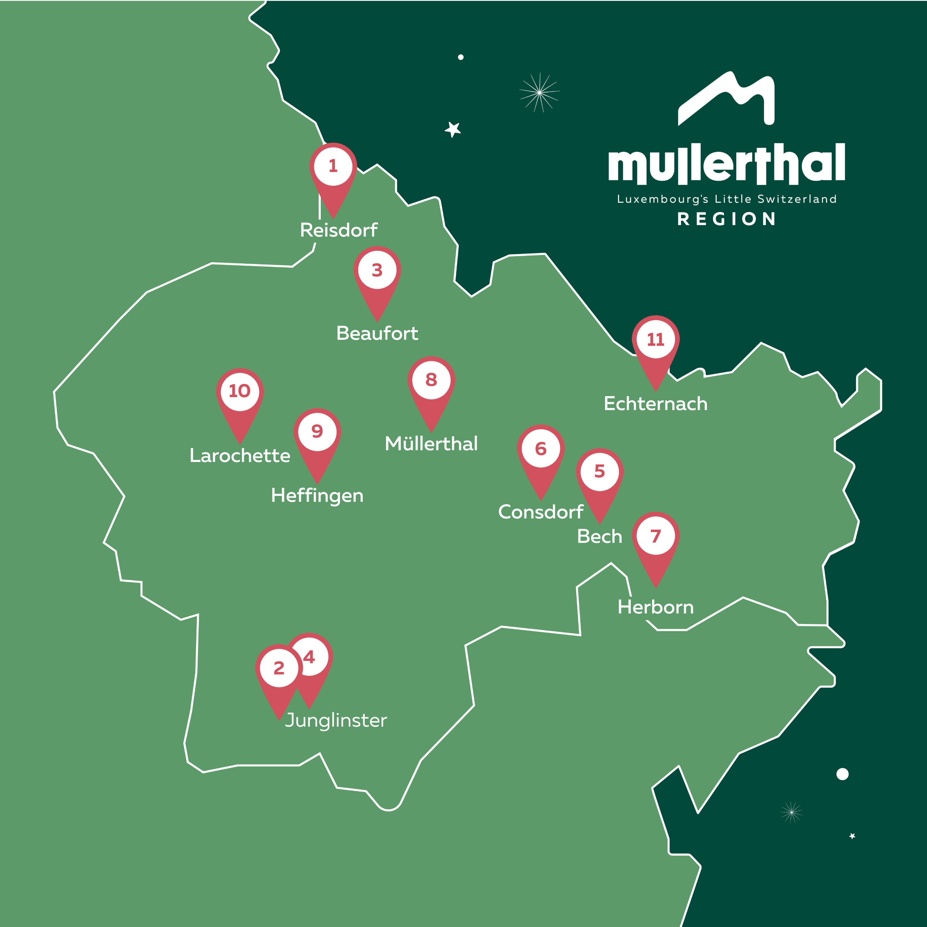 As the days grow shorter and a crisp winter chill fills the air, the Mullerthal Region transforms into a cosy winter escape. Visit the region's atmospheric winter markets, which entice visitors with their festive atmosphere, arts and crafts and culinary delights. Here you will find everything the cold season has to offer - from home-made products to wintery treats and warming drinks.