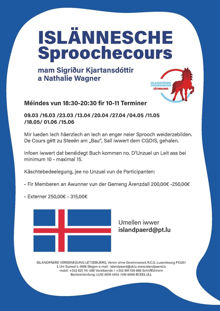 We cordially invite you to continue your education in a new language. The course will be held in Stegen at “Bau,” in the room above the CGDIS. Information about the required book will follow. The number of participants is a minimum of 10 and a maximum of 15.