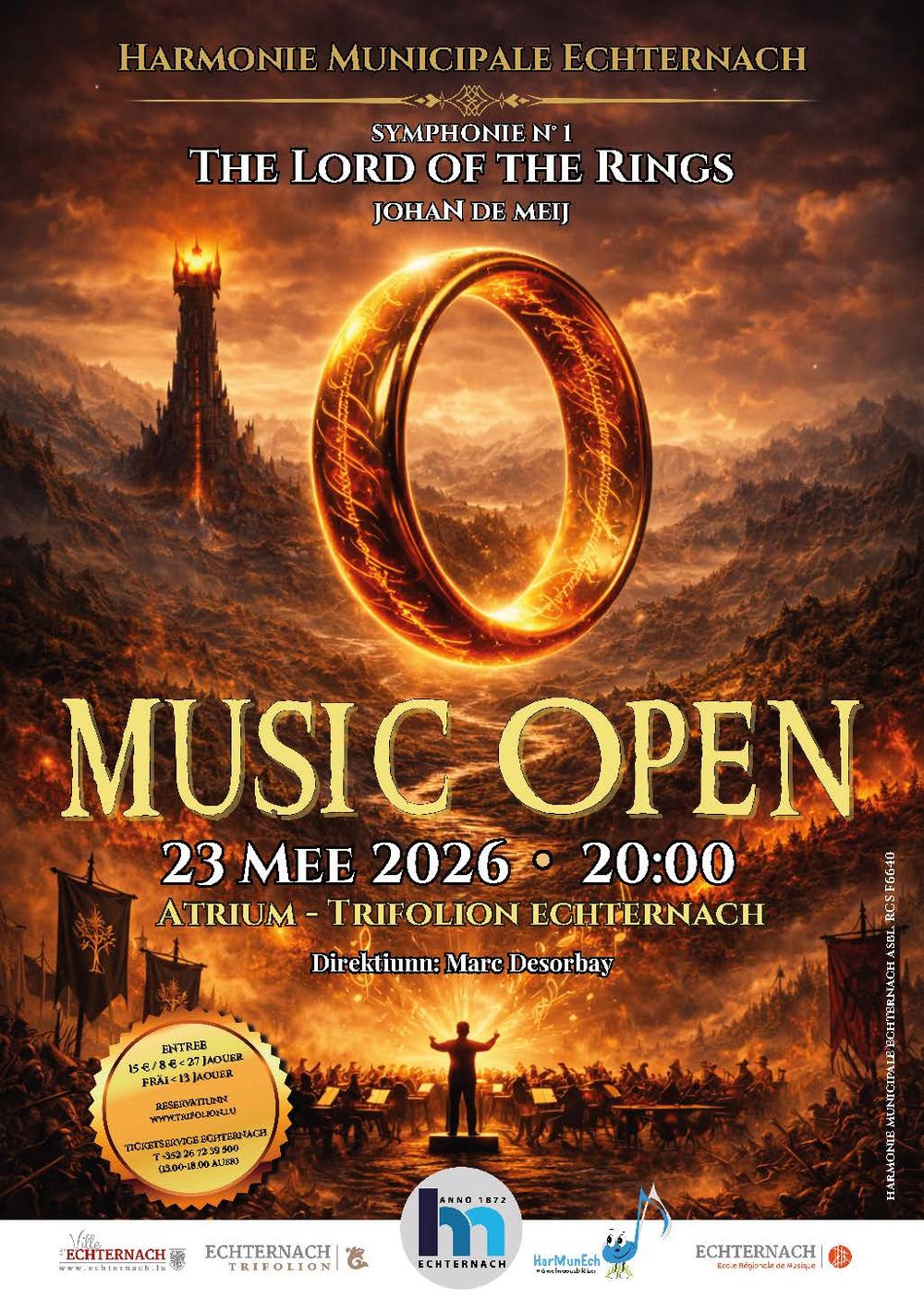 The evening will open with the youth orchestra HarMunEch Hämelmaousbléiser, before the highlight of the program: Johan de Meij’s Symphony No. 1 “The Lord of the Rings”. The program will be complemented by additional selected works.
