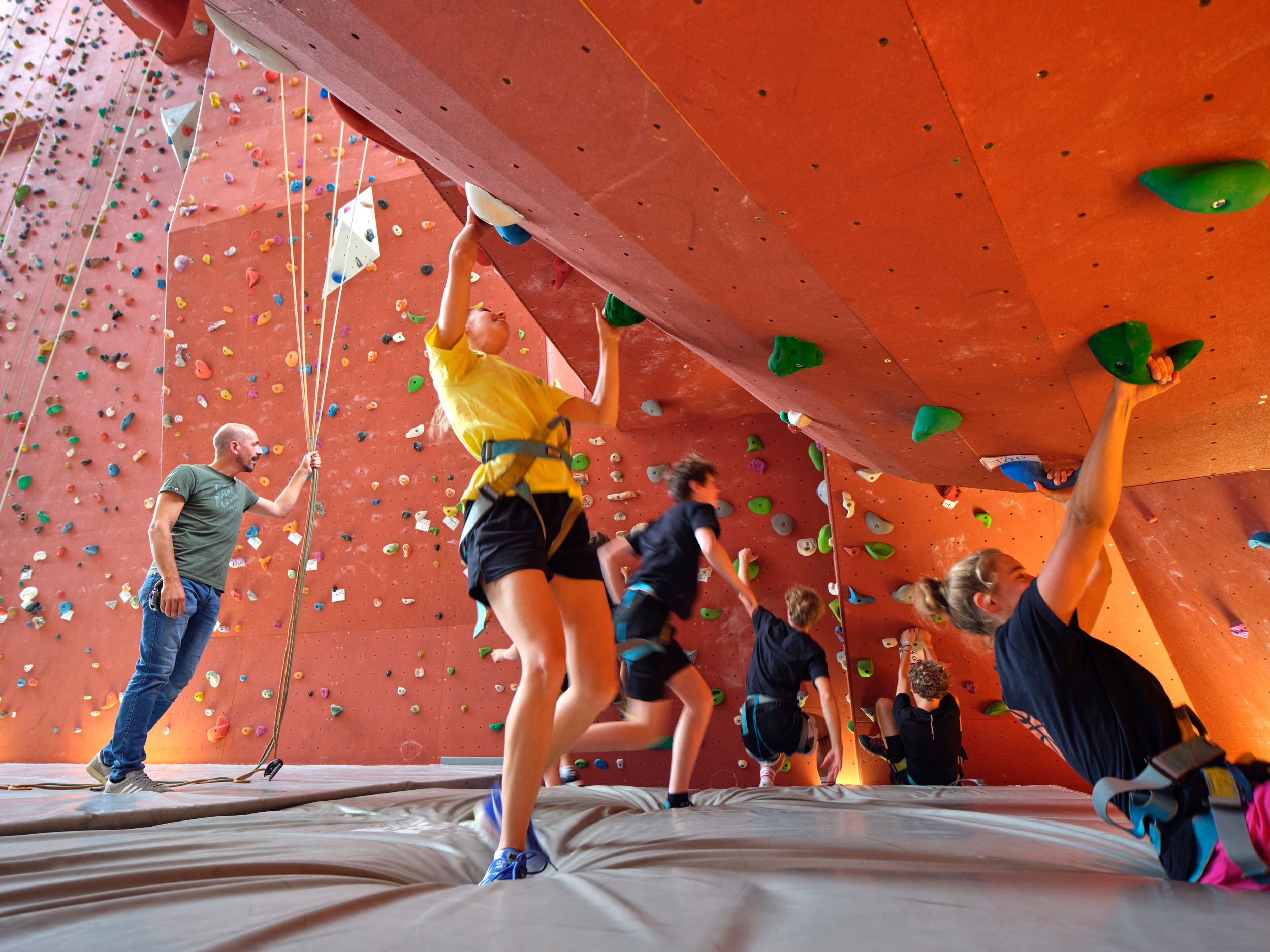 Les enfants à partir de 5 ans accompagnés par un adulte payant sont admis aux séances de l’escalade libre.
