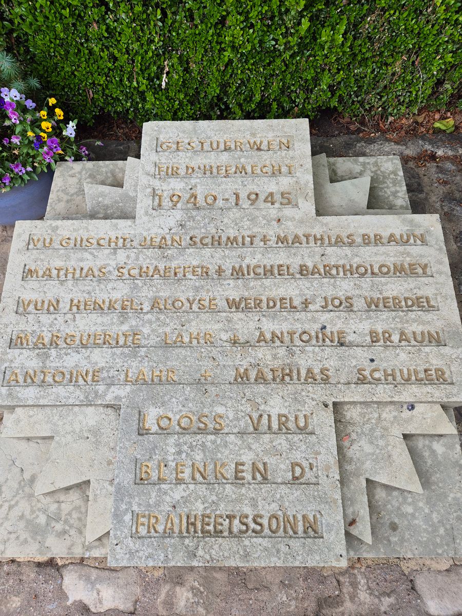 L'inscription dit : « Gestuerwe fir d'Heemecht - 1940-45 ». (“Morts pour la patrie”)