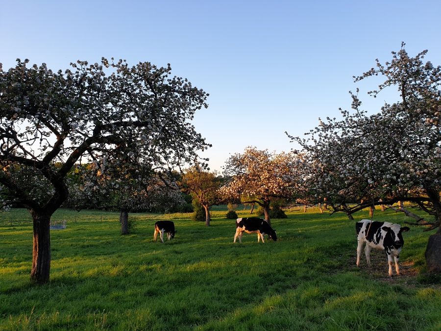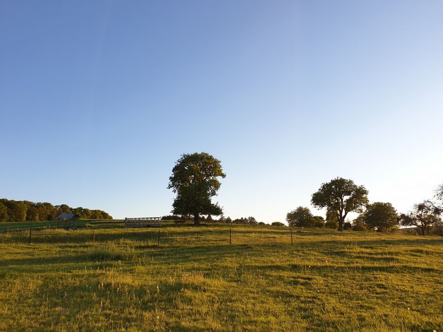 Parcours varié avec forêt, rochers, eau et champs, adapté aux familles.