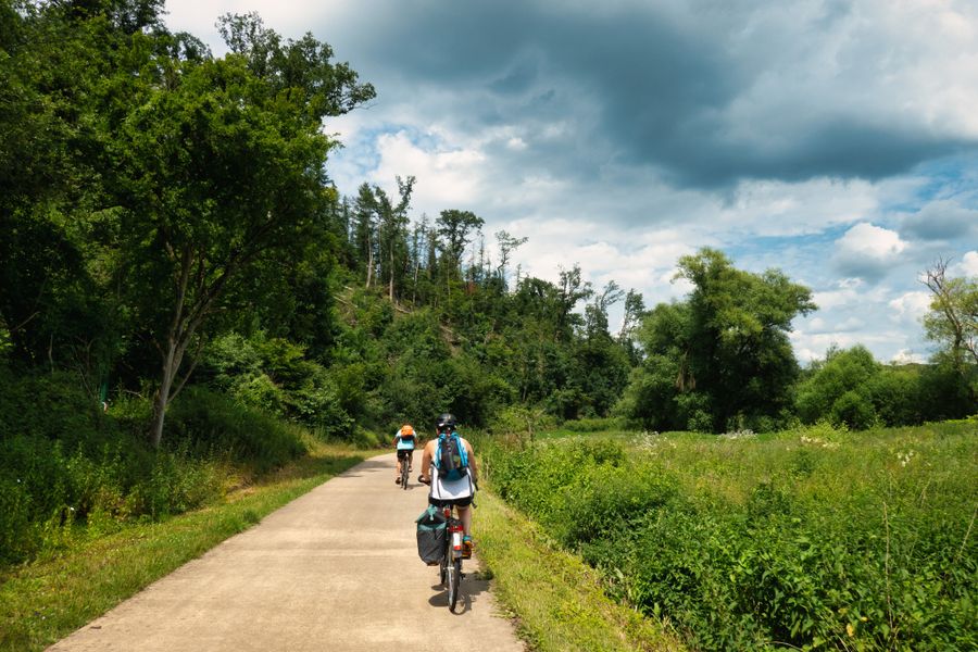 Excursion à Schengen (aller-retour env. 20 km) : Nous suivons la PC3 le long de la Moselle en amont jusqu'à Schengen. Cette piste longe la "route du Vin" (CR152), qui sort de la localité en passant par Schwebsange jusqu’à Remerschen. Là, vous pouvez bifurquer vers la zone naturelle protégée "Haff Reimech" et le lac de loisirs. Une visite du centre de nature "Biodiversum" vaut la peine et en face, vous pouvez vous baigner ou faire une pause au restaurant. De plus, l’auberge de jeunesse de Remerschen est certifiée "bed+bike" et offre donc un bel hébergement pour passer la nuit. La piste continue jusqu'à Schengen, où vous pouvez obtenir des informations sur l’"accord de Schengen" au musée européen.