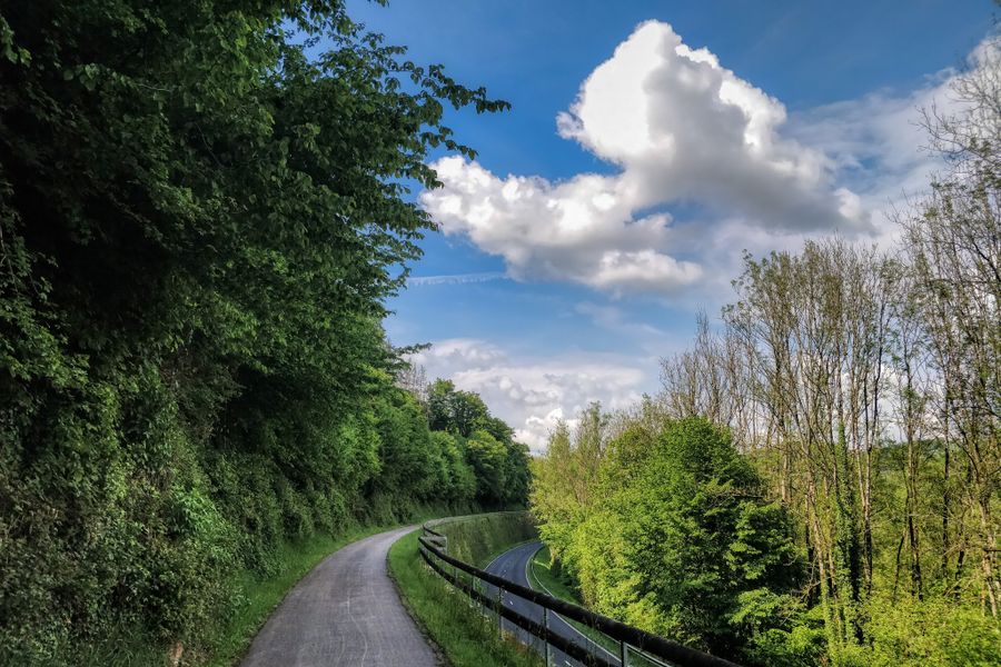 Notre parcours commence sur le pont au-dessus de l'Alzette à Luxembourg-Grund, d'où nous avons une vue magnifique sur une partie de la vieille ville de Luxembourg. Nous empruntons le « Bisserwee », d'où nous suivons la piste cyclable officielle PC1 qui nous mène jusqu'au parc de Hesperange. De là, nous roulons jusqu'au camping. Nous tournons à gauche dans la Rue du Camping et rencontrons la Route de Thionville (N3) que nous traversons. Nous nous trouvons maintenant dans la Rue de Syren (CR154) à Alzingen, que nous suivons hors de la localité en direction de Syren. Nous suivons le CR154 jusqu'à la hauteur juste avant Syren et tournons à droite sur un chemin de campagne en direction de Hassel (signalisation cyclable). À partir de Hassel, le parcours est marqué par des pictogrammes vélo sur la chaussée. Nous suivons la Rue des Champs et tournons à droite en direction de Dalheim dans la rue "Killebierg", avant de tourner encore une fois à droite dans la "Rue de Dalheim" (CR162) qui nous mène hors de la localité. Après les dernières maisons de Hassel, nous prenons à droite le premier chemin de campagne vers Filsdorf. De là, nous roulons jusqu'à la N13 que nous traversons ensuite. Nous passons devant l'église et continuons sur la rue "Am Eck" jusqu'à pouvoir tourner à droite dans la rue "Am klengen Eck". Nous croisons le CR162 et continuons sur le Lächewee (CR155) jusqu'à Dalheim. Peu avant la localité, nous retrouvons la N13 que nous suivons à droite sur 200 mètres avant de tourner de nouveau à droite dans un chemin de campagne qui mène en direction d'Ellange. À la route principale, nous tournons à droite, passons devant l'église et entrons à gauche dans la "Rue du Cimetière". Nous atteignons Ellange-Gare, où nous prenons à gauche la piste cyclable PC7. La piste suit l'ancienne ligne de chemin de fer à voie étroite « Jangeli », qui reliait autrefois Luxembourg-Ville à Mondorf-les-Bains puis Remich. Ce beau parcours traverse d'abord la forêt puis longe des vignobles jusqu'à la petite ville mosellane de Remich. Nous passons devant le cimetière et prenons au rond-point la deuxième sortie, la Rue de la Gare. Nous passons devant l'église et tournons à droite dans la Rue de l'Église. Après environ 50 mètres, nous bifurquons légèrement à droite dans l'Avenue Lamort-Velter (CR152), qui nous emmène hors des vignobles puis plus tard jusqu'à la rive de la Moselle. Là, nous retrouvons la piste cyclable nationale PC3.