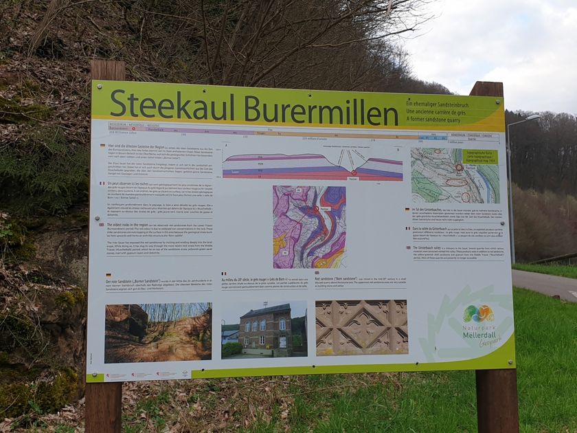 Les rivières qui ont débouché dans la mer y ont amené des grains de différentes tailles. Ces grains, mais également d'autres substances dissoutes comme le chaux ou d'autres sels, se sont déposés sur le fond marin et furent solidifiés en pierre. Dans la région du Natur- & Geopark Mëllerdall, il s'agit principalement de grès, de marnes, de calcaires et de dolomies.