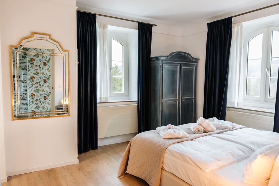 Situated in the middle of Luxembourg’s Little Switzerland with a magnificent view over the Sûre valley, the hotel offers a romantic and gourmet getaway. It features 38 cosy and quiet rooms, walking paths through the hotel park, and a golf course just 14 km away.