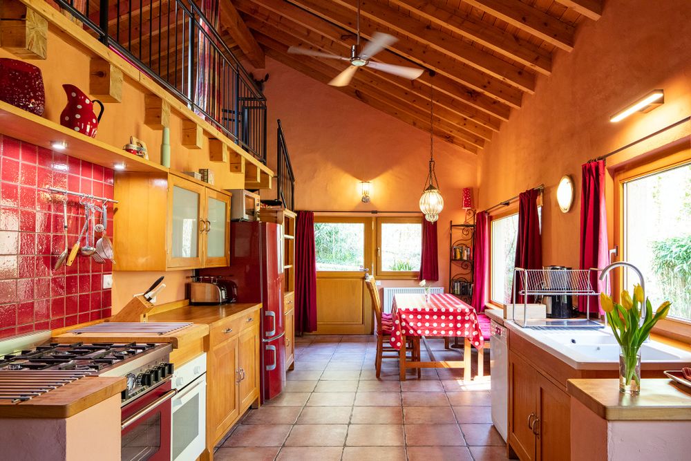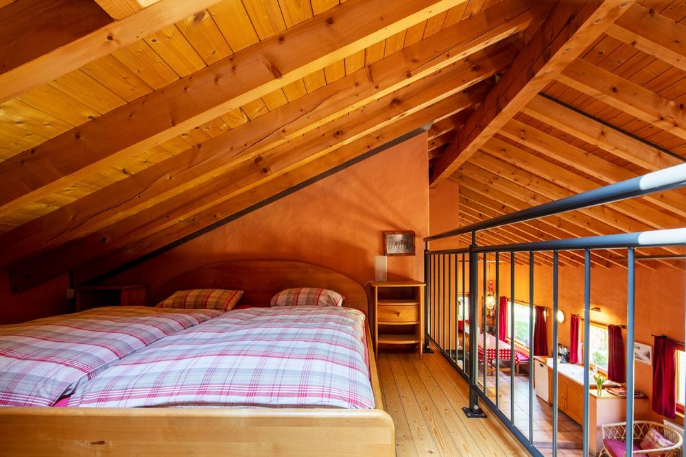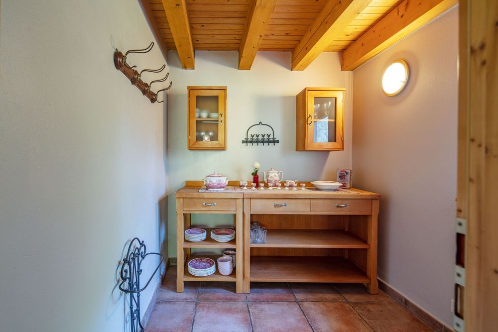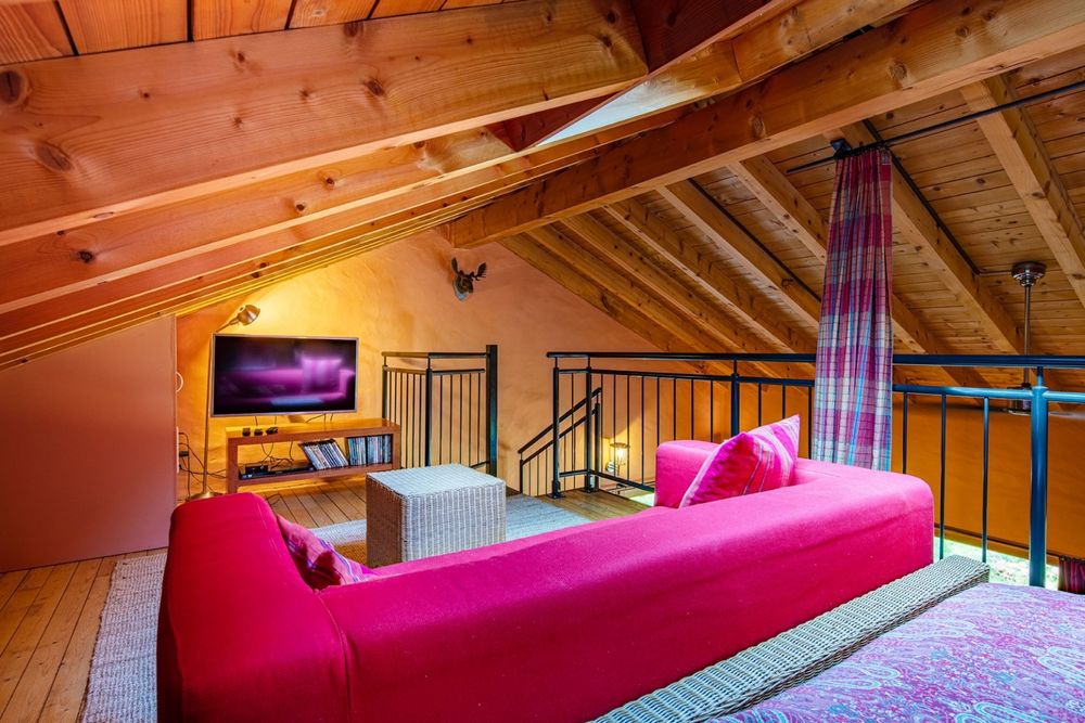 The spacious residential area with a kitchenette is situated on the ground floor. In addition there are two bedrooms, a bathroom and a storeroom located on the ground floor. The first floor offers two more bedrooms on mezzanines. Free internet access (wifi)