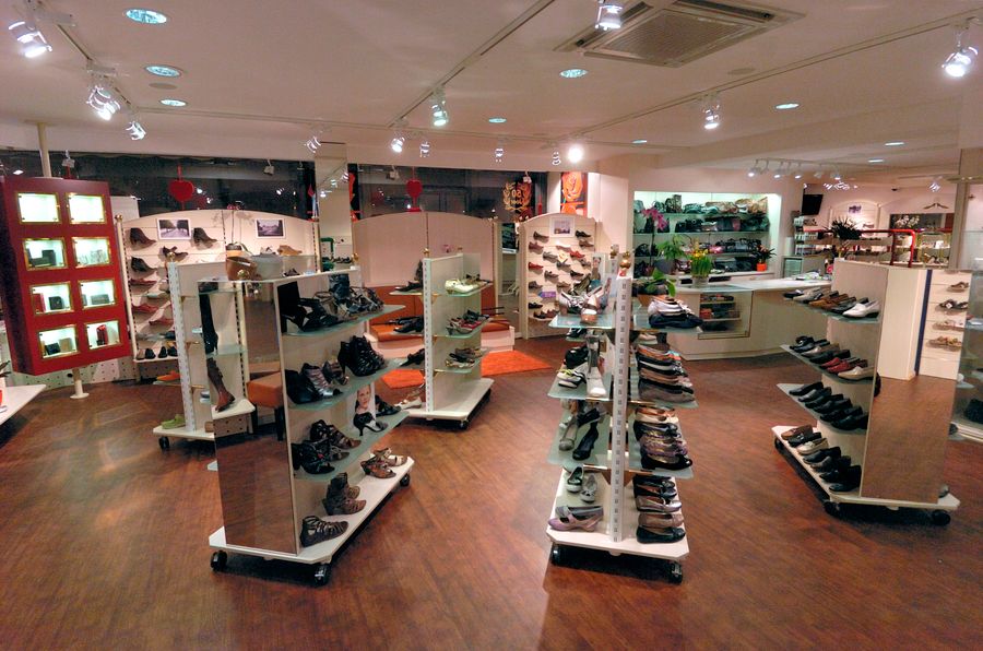Het grote interieur met airconditioning en veel zitplaatsen biedt aantrekkelijke, comfortabele, goed passende wandelschoenen, schoenen, sandalen, laarzen, handtassen, portemonnees, herenriemen, sportsokken en teensokken, paraplu's en nog veel meer.