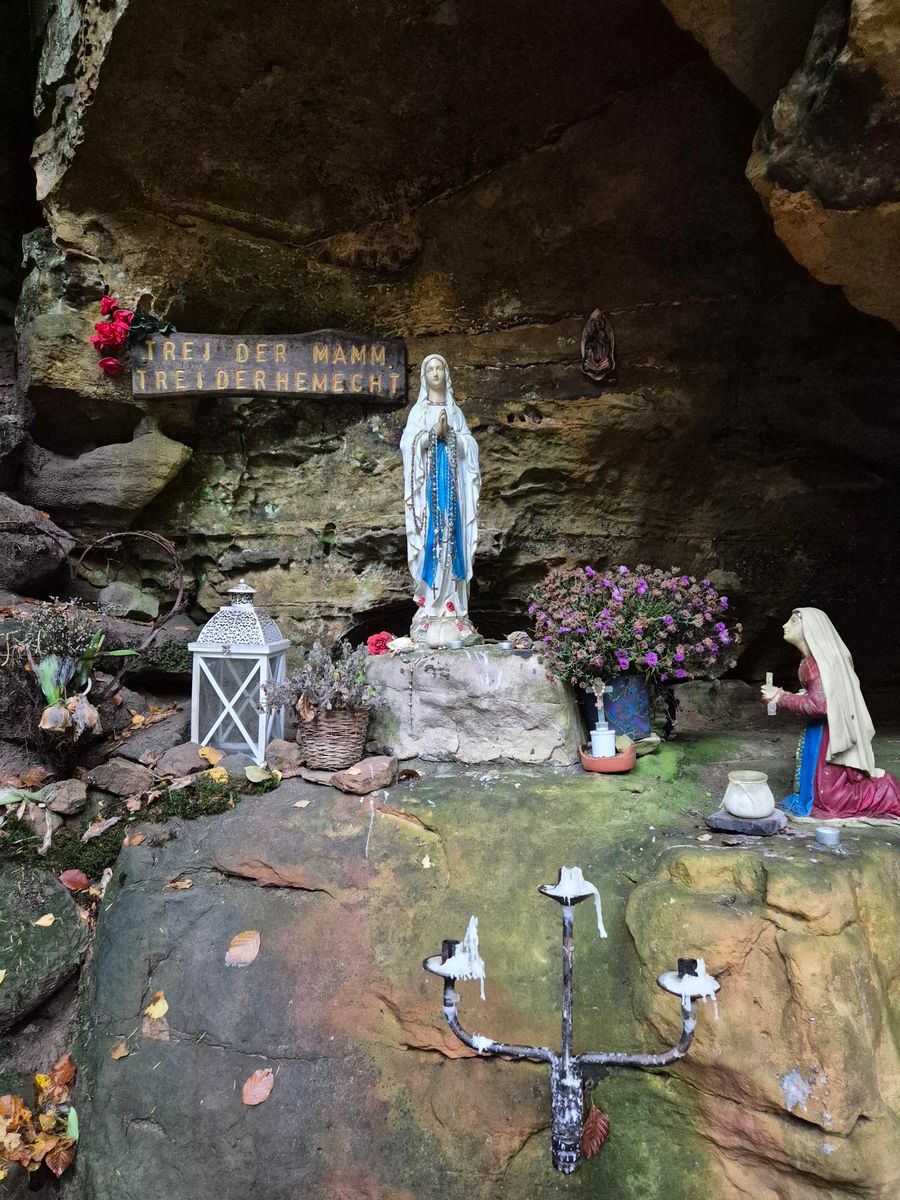 Tijdens de Tweede Wereldoorlog verborgen jonge Luxemburgers zich in een rots bij de Siwebaach in Haller. Na de oorlog bouwden ze hun schuilplaats om tot een Lourdesgrot als dank aan Maria voor haar bescherming.