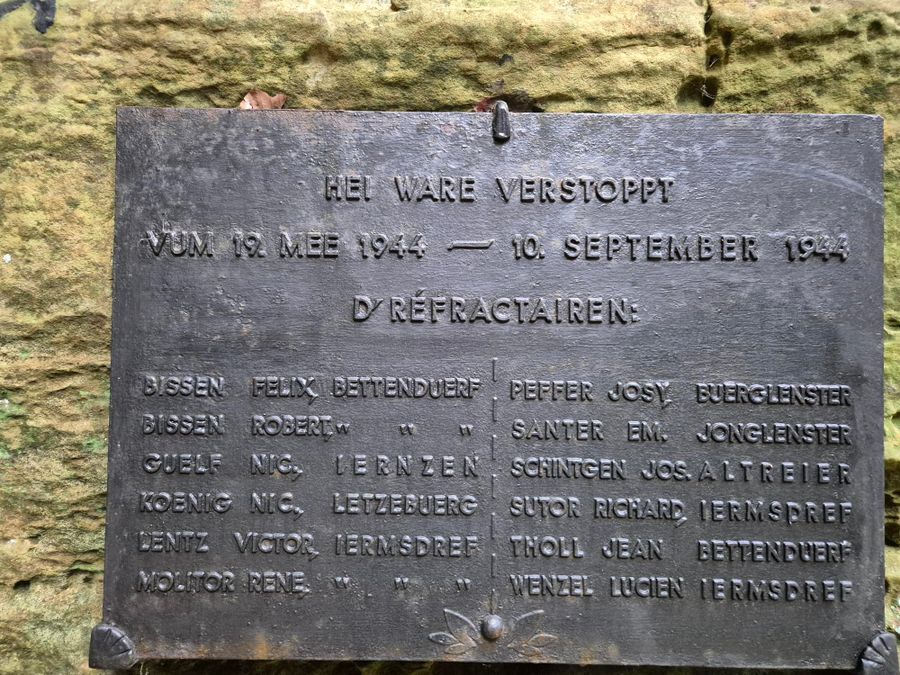 Ze zochten ook naar veilige schuilplaatsen in de wijken Ermsdorf, Haller en Medernach. In Haller werd een rots gevonden in een dicht, ondoordringbaar sparrenbos in de buurt van verschillende boerderijen. Tussen 19 mei en 10 september 1944 verstopten Luxemburgse refractaire soldaten zich in de holle rots. Al snel verstopten zich wel 12 jonge mannen in de bunker, zodat het langzaam krap werd en de bunker moest worden uitgebreid. De uitbreiding vond meestal 's nachts plaats en er werden de nodige maatregelen genomen om lawaai en geluid te vermijden en onopgemerkt te blijven.
