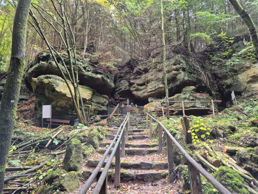 Om de grot te bereiken, kunt u uw auto bij Haler Millen parkeren en vervolgens 800 meter het wandelpad W4 volgen. Sla dan rechtsaf het lokale wandelpad B7 op. Na nog eens 200 meter bereikt u de indrukwekkende grot.