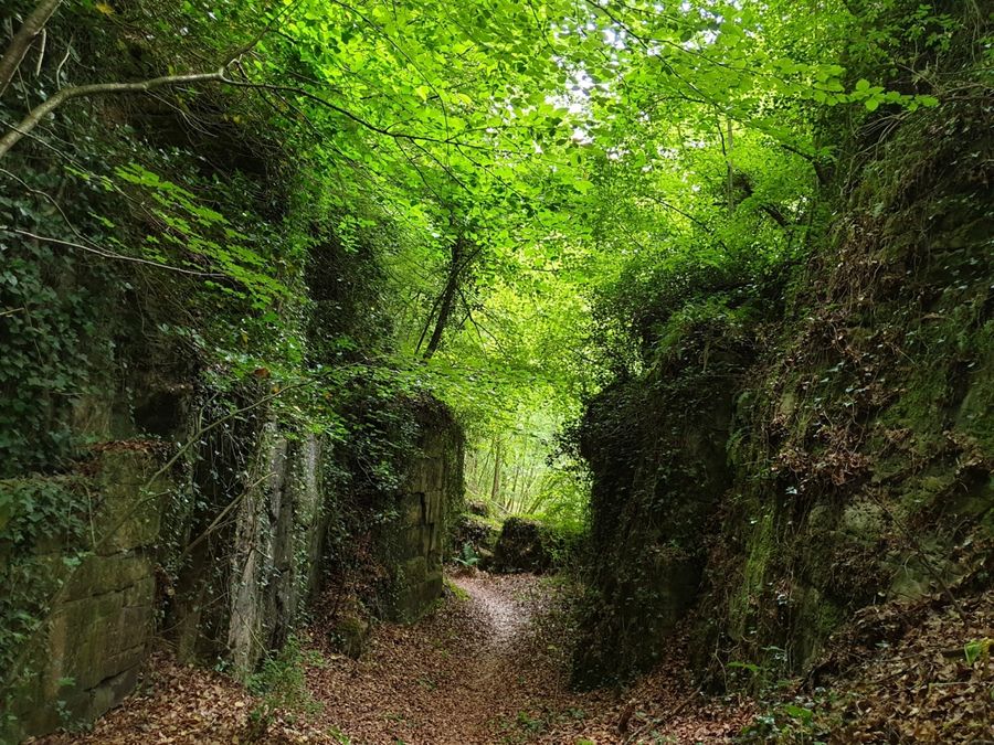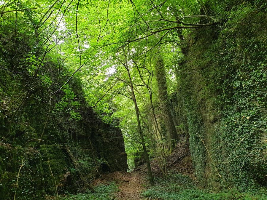 Indrukwekkende kloof uit dolomietsteen op de lokale rondwandeling R8 en de Mullerthal Trail Route 1.