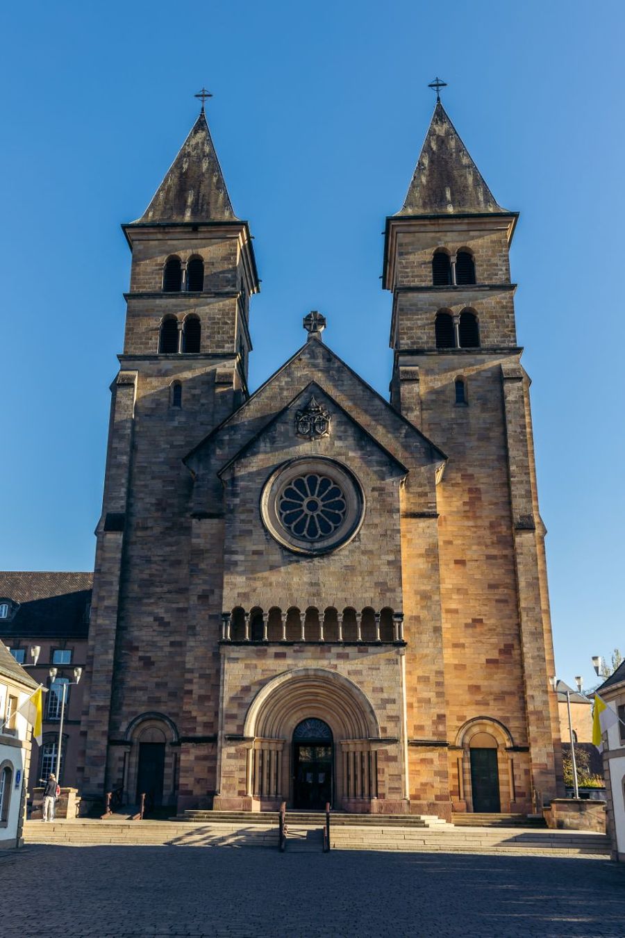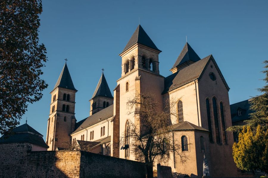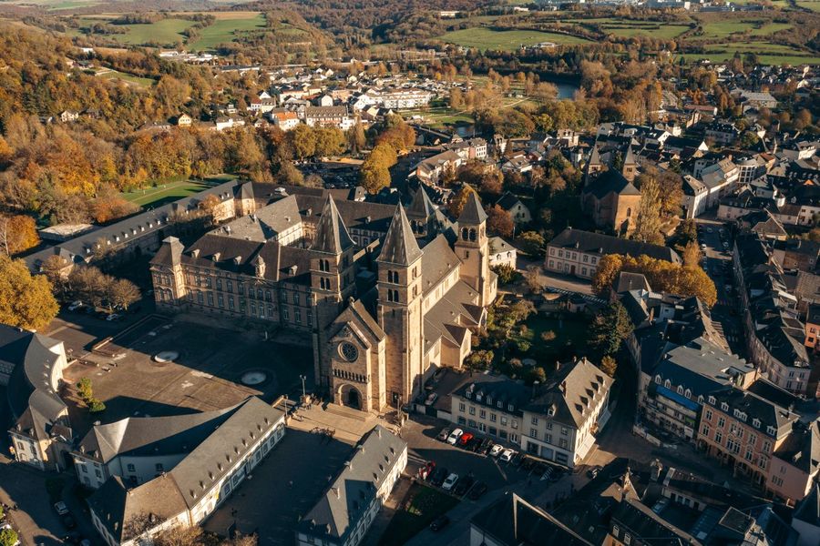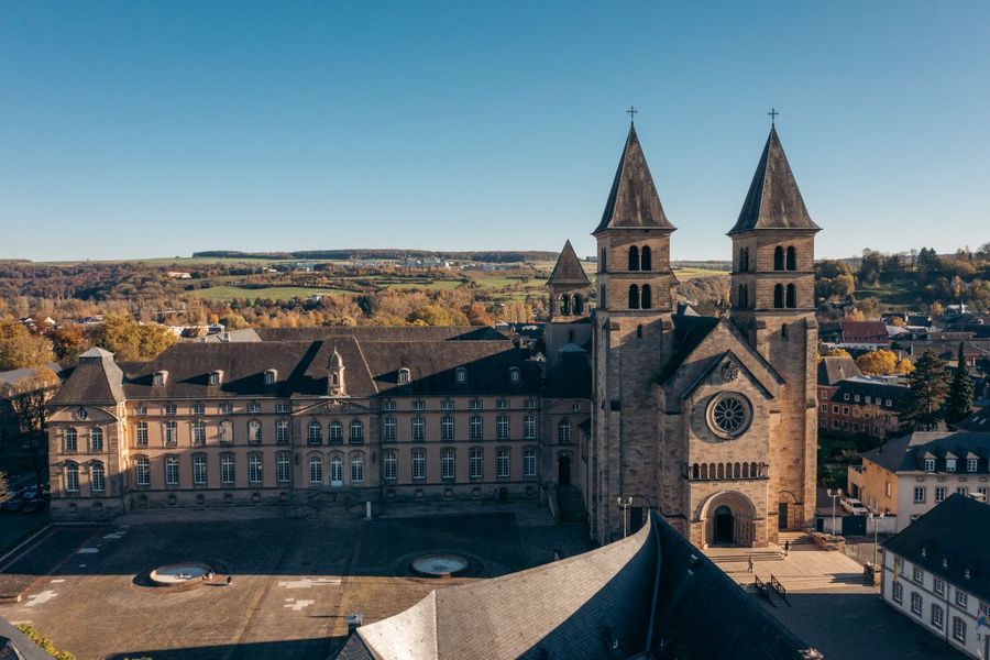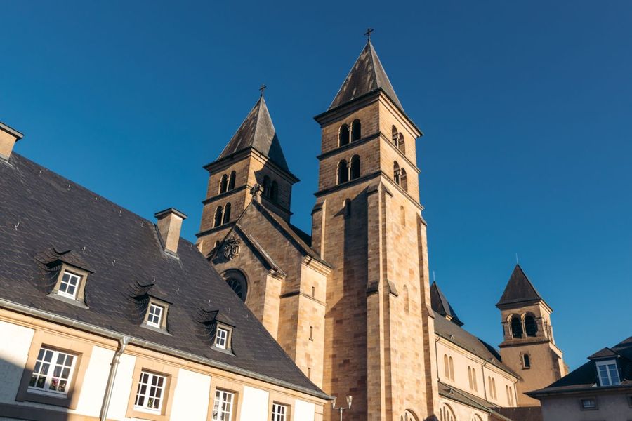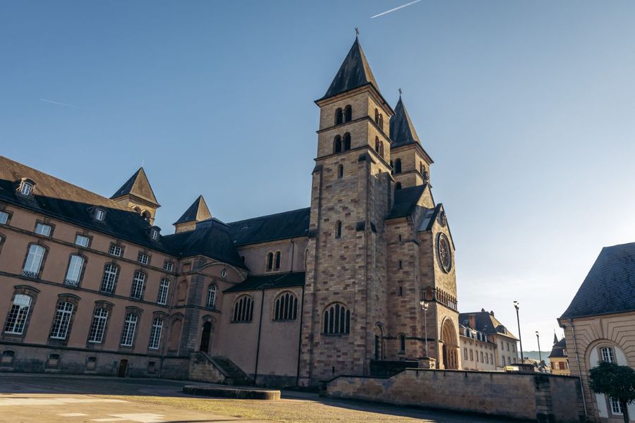Crypte (Merovingers) met graf van de stichter van de abdij van Echternach. De huidige St. Willibrordbasiliek dateert uit de 11e en 13e eeuw. Na zware beschadigingen gedurende het Ardennenoffensief werd hij in neoromaanse stijl herbouwd. De crypte stamt uit de Karolingische tijd en heeft waardevolle fresco s uit dit tijdperk. Hier staat de rijk versierde marmeren sarcofaag met het stoffelijk overschot van de Heilige Willibrord en ontspringt ook de St. Willibrord-bron. De barokke biechtstoelen en de glas-in-lood vensters van de basiliek zijn evenzeer bezienswaardig.