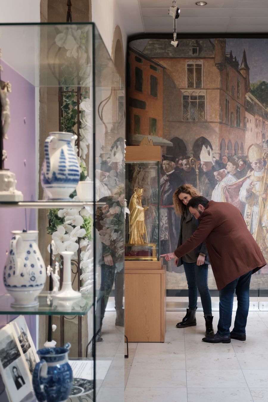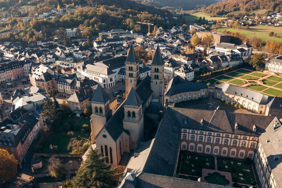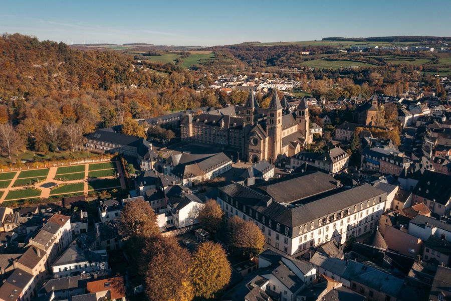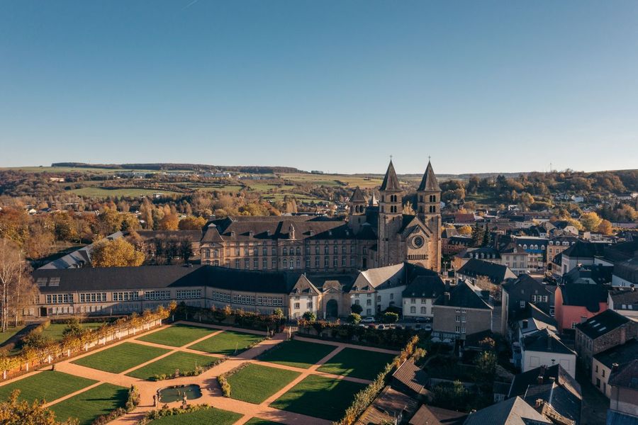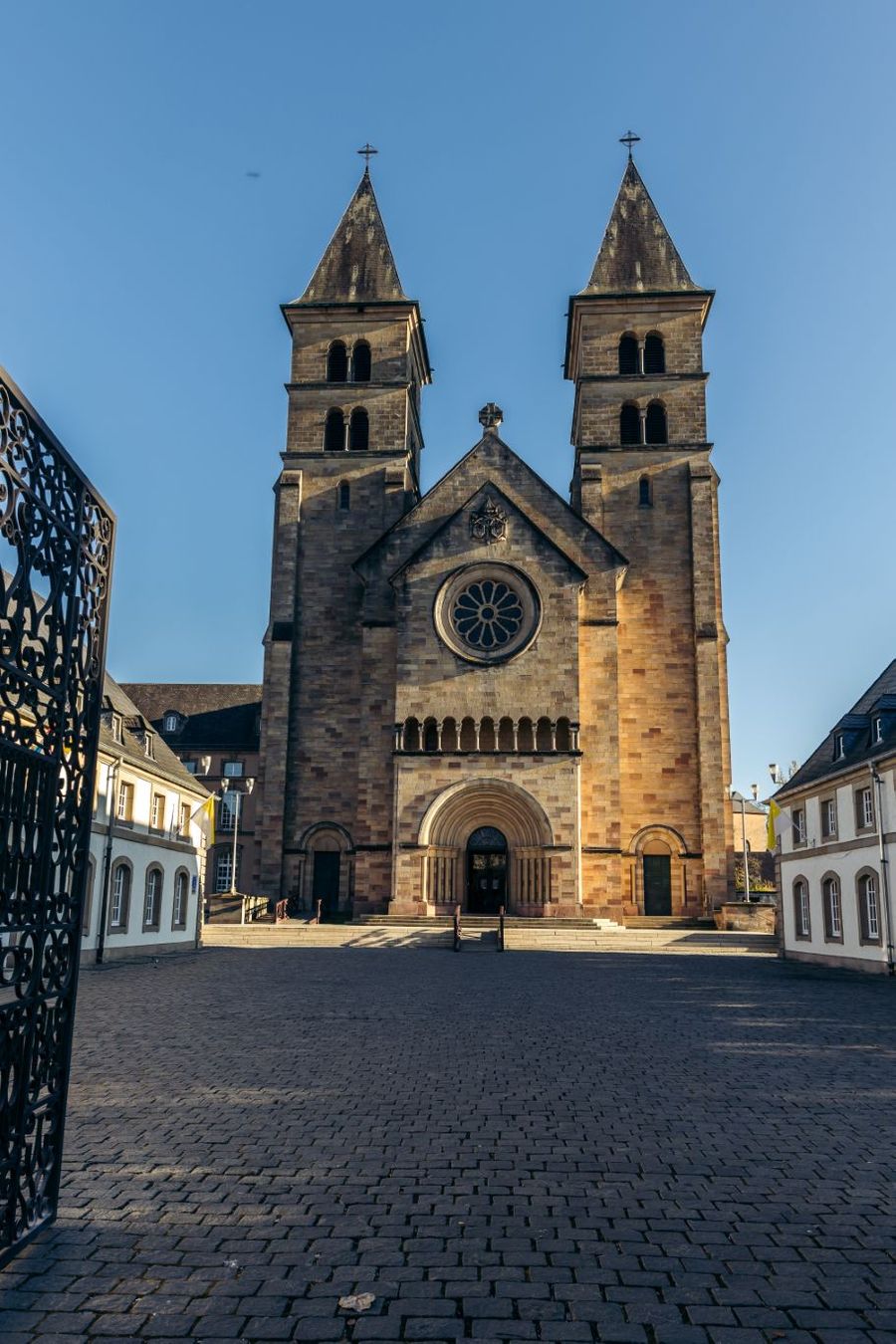 Crypte (Merovingers) met graf van de stichter van de abdij van Echternach. De huidige St. Willibrordbasiliek dateert uit de 11e en 13e eeuw. Na zware beschadigingen gedurende het Ardennenoffensief werd hij in neoromaanse stijl herbouwd. De crypte stamt uit de Karolingische tijd en heeft waardevolle fresco s uit dit tijdperk. Hier staat de rijk versierde marmeren sarcofaag met het stoffelijk overschot van de Heilige Willibrord en ontspringt ook de St. Willibrord-bron. De barokke biechtstoelen en de glas-in-lood vensters van de basiliek zijn evenzeer bezienswaardig.