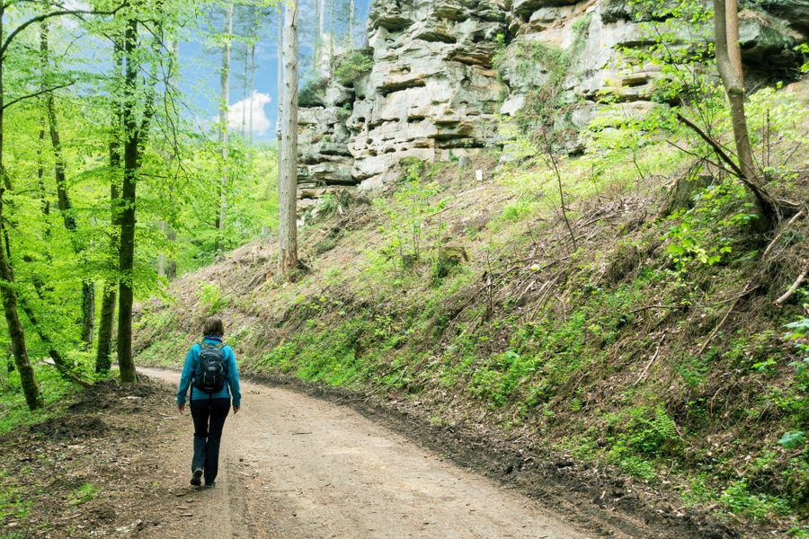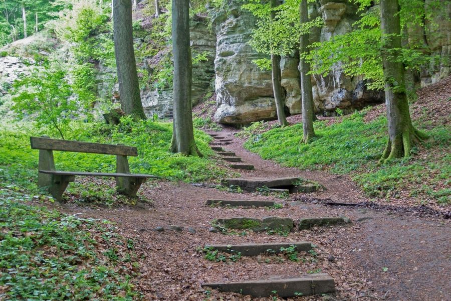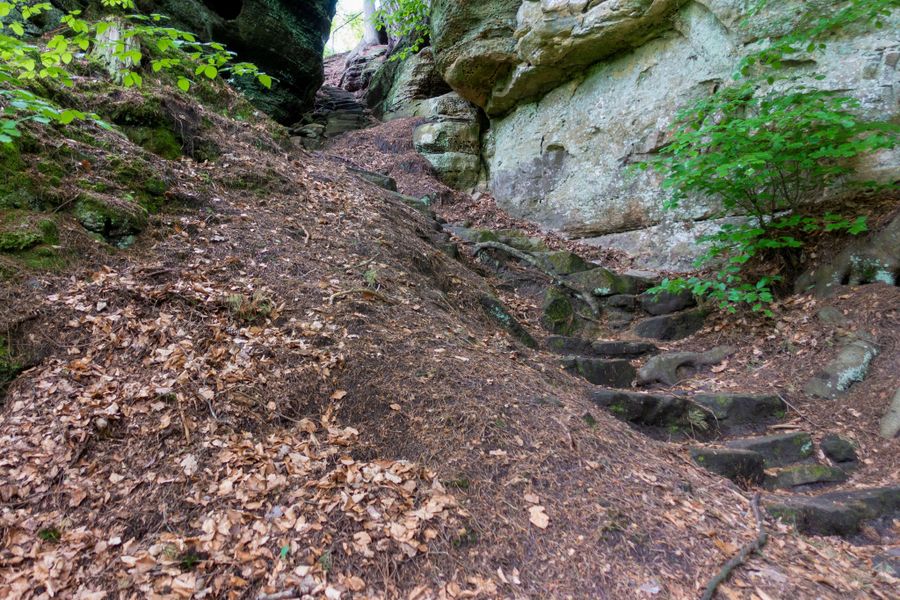 Deze kleine rondwandeling met veel bospaden leidt over aanvankelijk enigszins uitdagende trappen door een smalle spleet het dal in. Ter hoogte van de straatweg is het midden van het pad al bereikt. Vanaf hier gaat het pad weer omhoog, langs het imposante rotslandschap en terug naar Consdorf.
