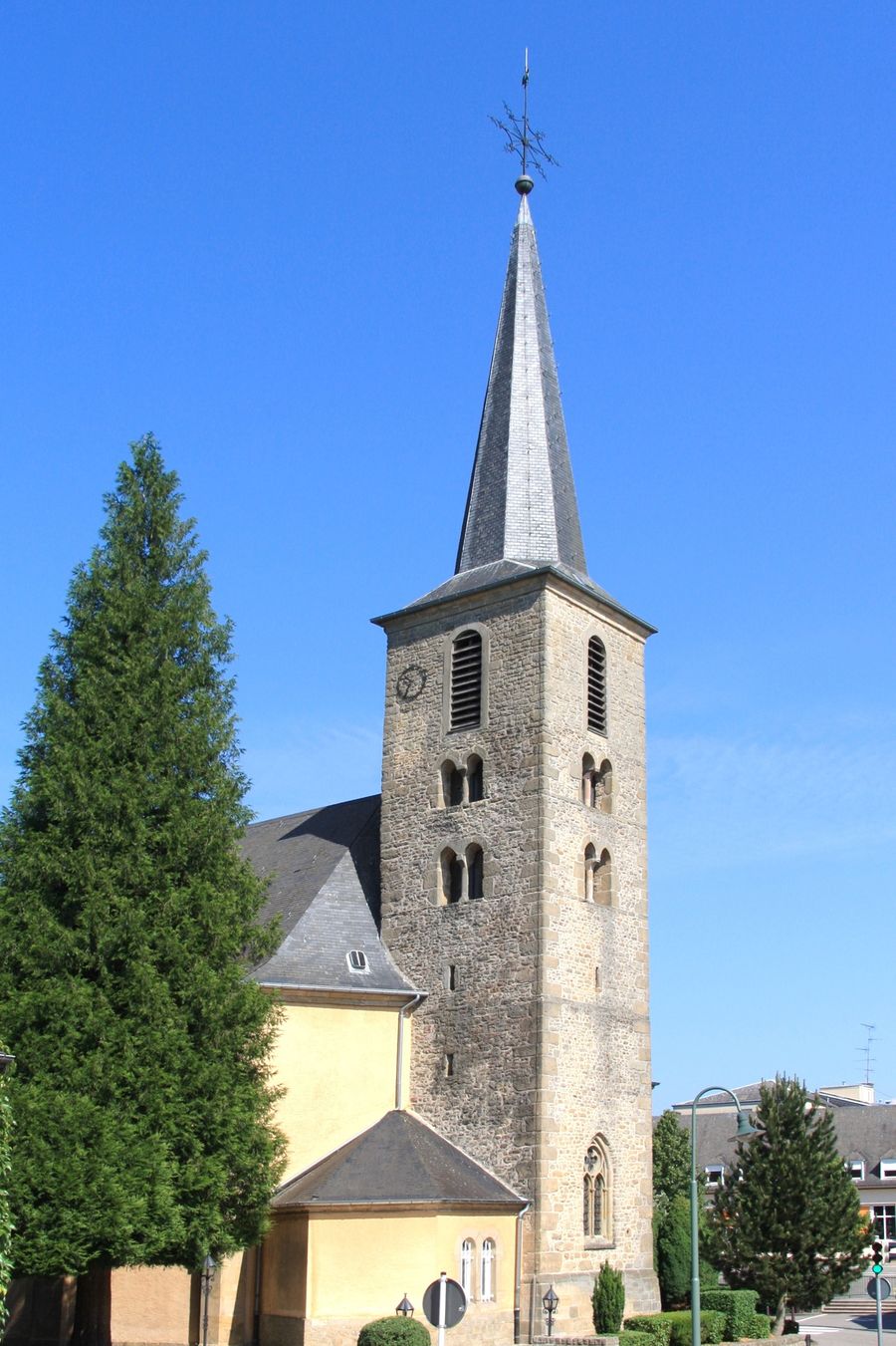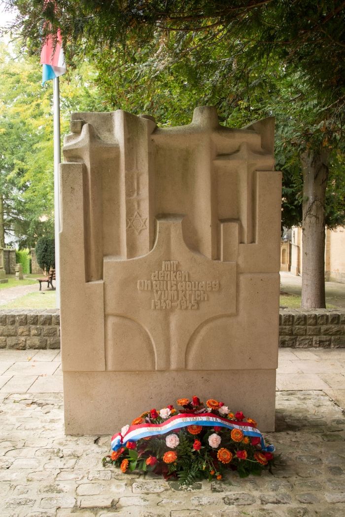 In het dorpscentrum springt de opvallende, als nationaal monument beschermde kerktoren onmiddelijk in het oog. Het monument naast de kerk herinnert aan de gevallen burgers van Consdorf tijdens de 2de wereldoorlog, maar ook aan de door de uitgebroken Typhusepidemie gestorven burgers in het jaar 1945. Na de basisschool, het seniorenhuis en het kerkhof in de straat „Burgkapp“, is het uitgangspunt weer bereikt.