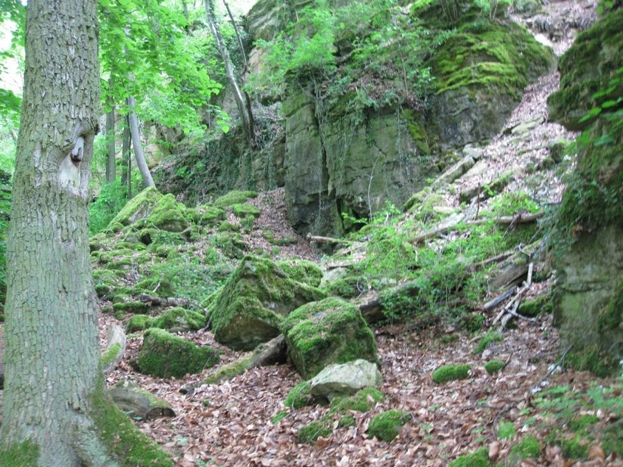 Het pad onthult de twee kanten van de Hëlt: de natte, rotsachtige noordkant met fascinerende rotsformaties en de zonverwarmde zuidkant waar wijnranken en orchideeën groeien.