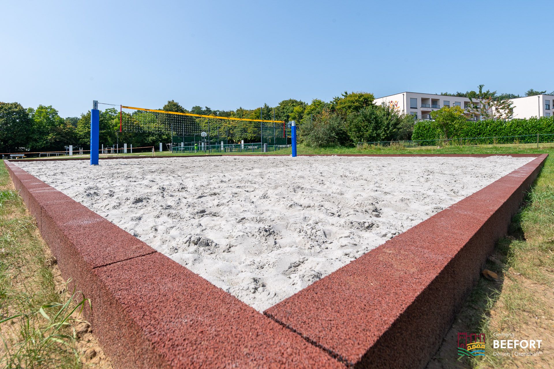 The beach volleyball court in Beaufort was completed in 2025 – located in front of the ice park, illuminated with solar-powered LED lights and equipped with a water column providing fresh drinking water.