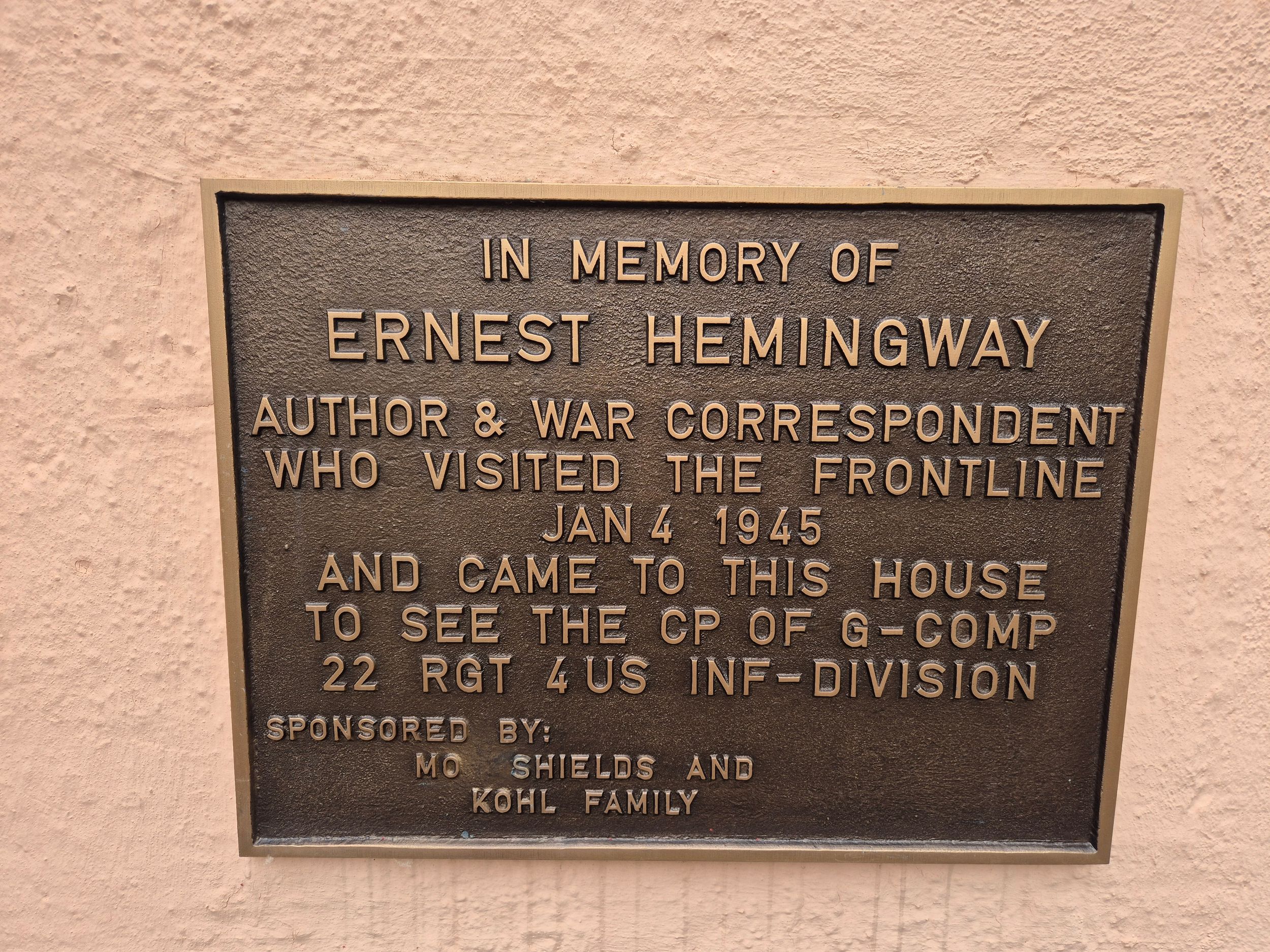 A memorial plaque on the house of the Osweiler-Kohl family in Dickweiler (5, rue de Boursdorf) commemorates the famous American writer and war reporter Ernest Hemingway, who was at the front during the Rundstedt Offensive in the Mullerthal Region - Luxembourg's Little Switzerland.