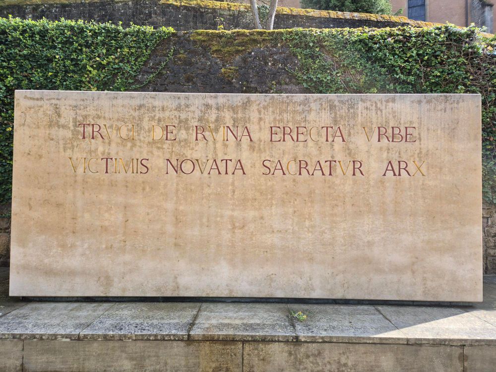 The Latin chronogram inscribed on the Luxembourg sandstone is a prose inscription containing a number of letters that also represent numbers.