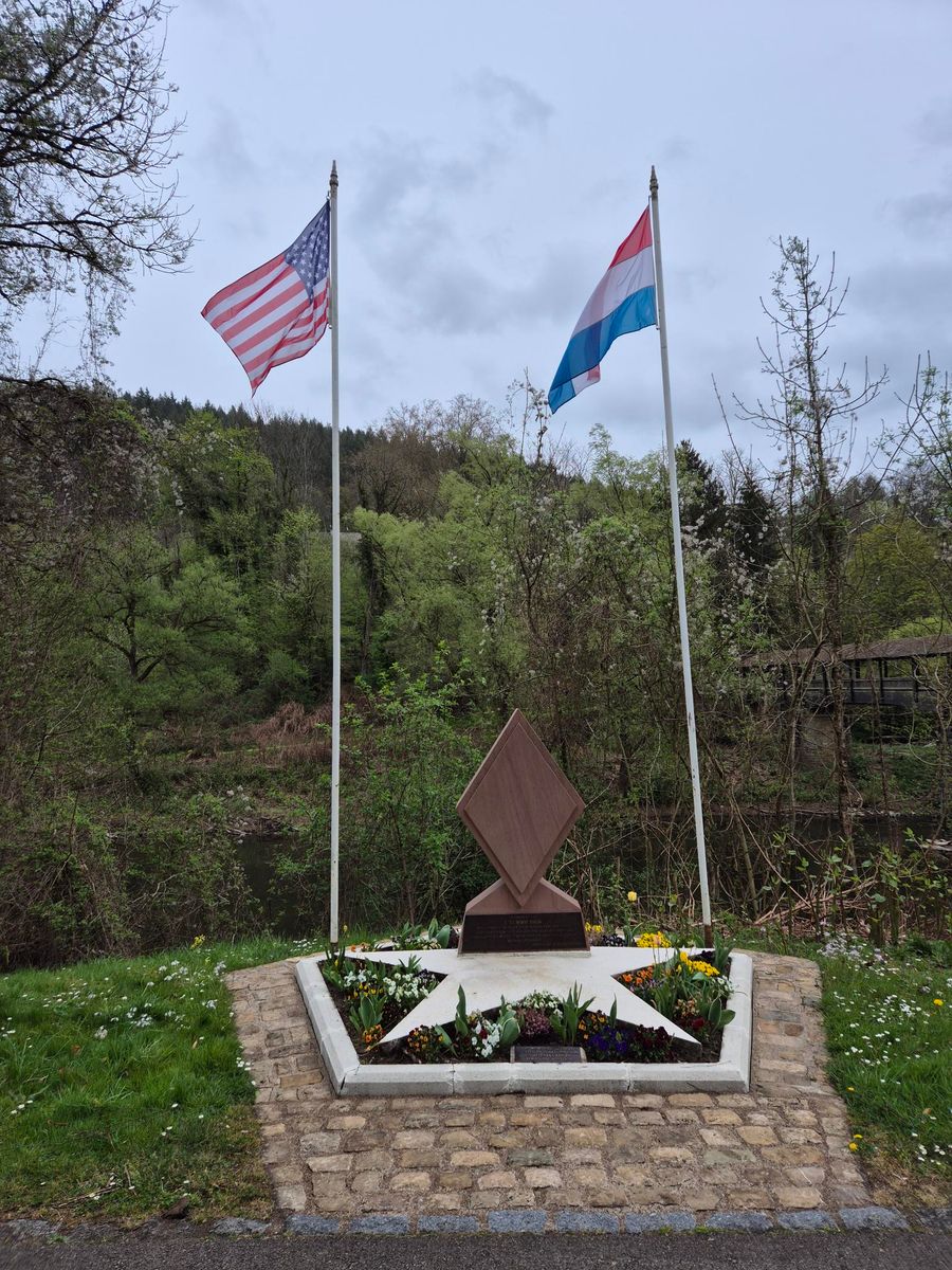 The memorial was erected in 1987 on the initiative of the National Museum of Military History of Diekirch. This was on the occasion of a ‘return to Luxembourg’ tour group by US veterans of the two pre-mentioned units headed by Major General (ret) William M. Breckinridge.
