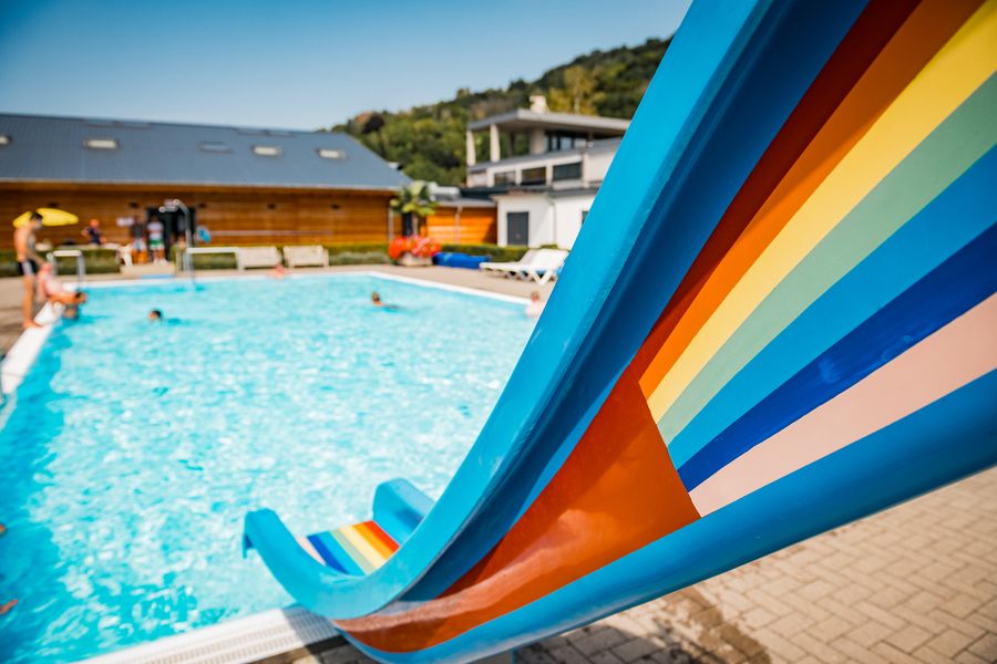 An outdoor pool of 18 x 8 meters on the Camping du Barrage in Rosport. Kids will enjoy this new-built swimmingpool.