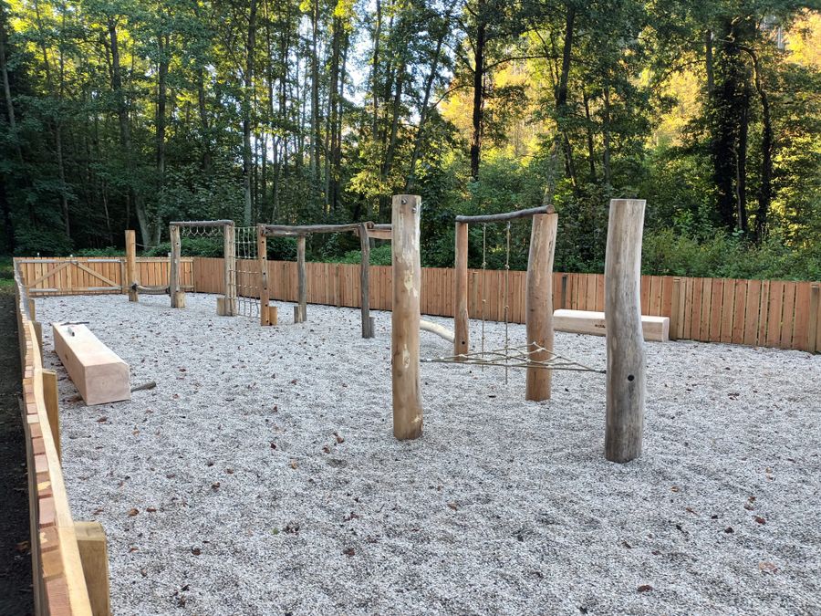Adventure playground Martbusch. Shady playground in the forest for big and small explorers.