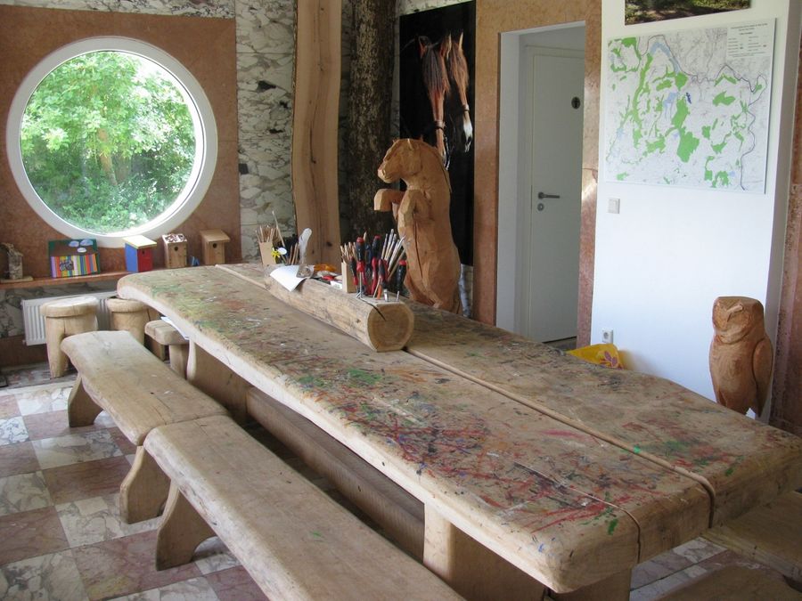The house of nature is located below the large forested slope “Haardt” which enjoys the status of a European habitat conservation area. Educational trails, extensive grazing projects of the nature administration and other seasonal nature projects (flowers and meadow maze, shallow water zone, etc.) can be seen here. The house of nature houses a large conference room, a library, a classroom and a wildlife exhibition. The aim is to sensitize children and adults for nature conservation and environmental protection.
