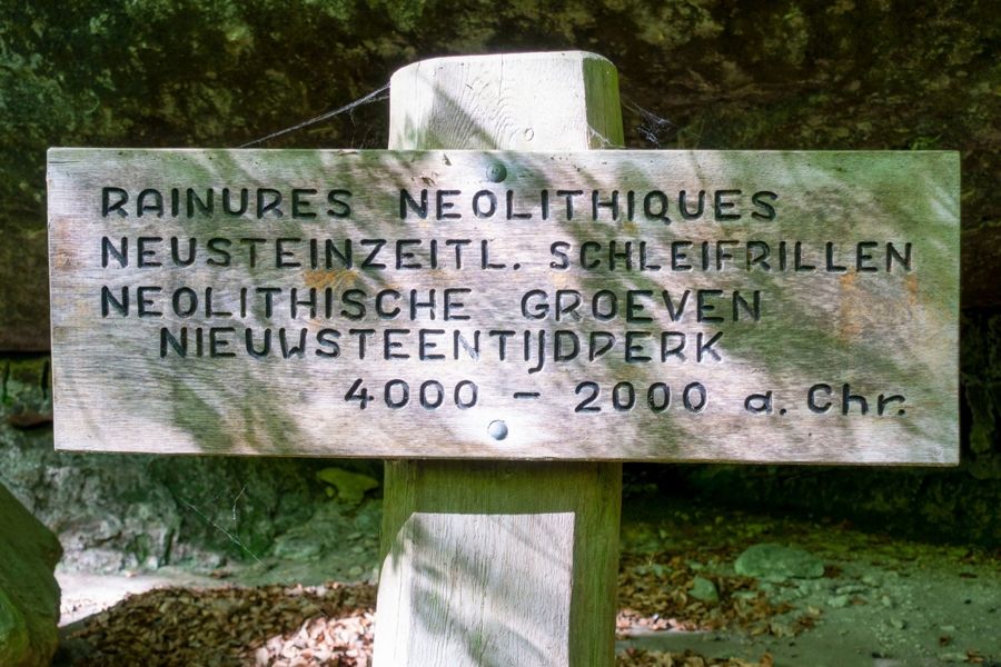 At the starting point of this circular hike, a defused aerial bomb excavated at the edge of the village recalls the horrors of the Second World War. Initially, the path leads along an asphalt road into the romantic Dielchen (little valley) and then continues along a narrow trail past the former hermitage Méchelskierch and further into the open fields around the hamlet of Wuelper. Soon the plateau of Muerbësch is reached, a woodland area with several ponds particularly vital for amphibian survival, which sometimes dry out in summer. After another stretch across open fields, the skyline of the hamlet Altrier with its distinctive water tower appears on the southern horizon. Now, the hiking path runs alongside the Steebaach, past prehistoric rock carvings, down into the valley of the Härdbaach. After crossing the small brook, there is an ascent into a rugged rock face with numerous bizarre weathering formations. After the recommended visit to the entire Adventure-Kuelscheier area, the ascending path leads out of the valley back up into the village and to the starting point.