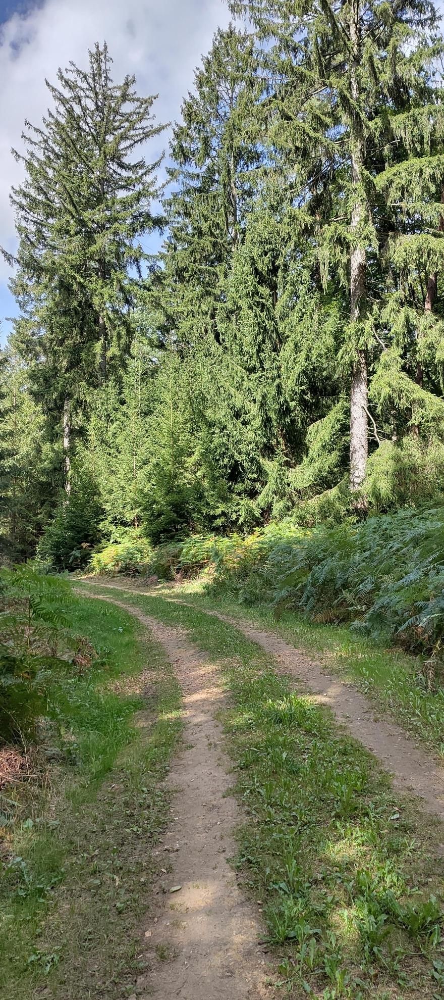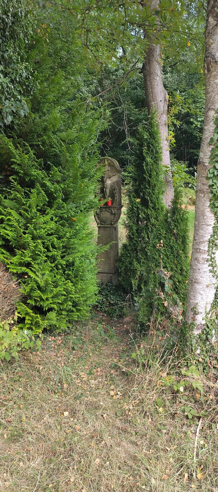The route begins in Angelsberg and initially passes an old wayside cross before leading over open fields into the forest. On wide forest paths the route winds through dense greenery, bordered by striking rock formations, some lying free in the terrain. Afterwards, it goes across the street, past fields, back to the starting point.
